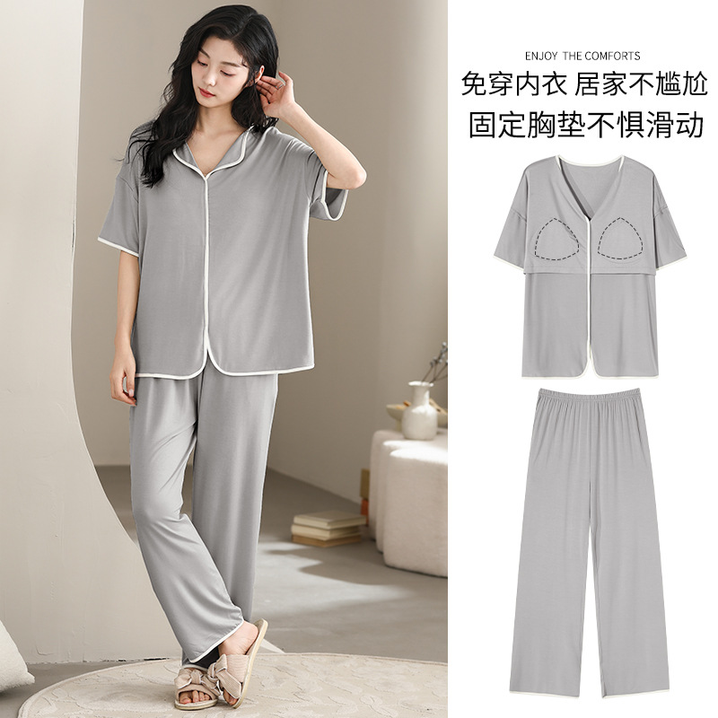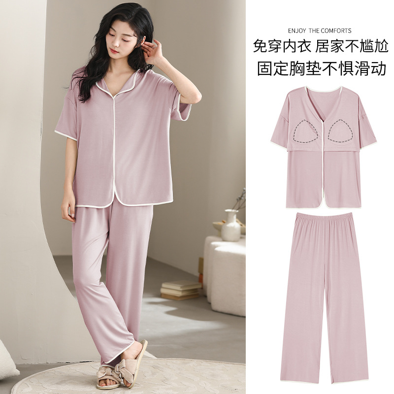 带胸垫睡衣女士夏季莫代尔短袖年新款休闲凉感夏天外穿家居服