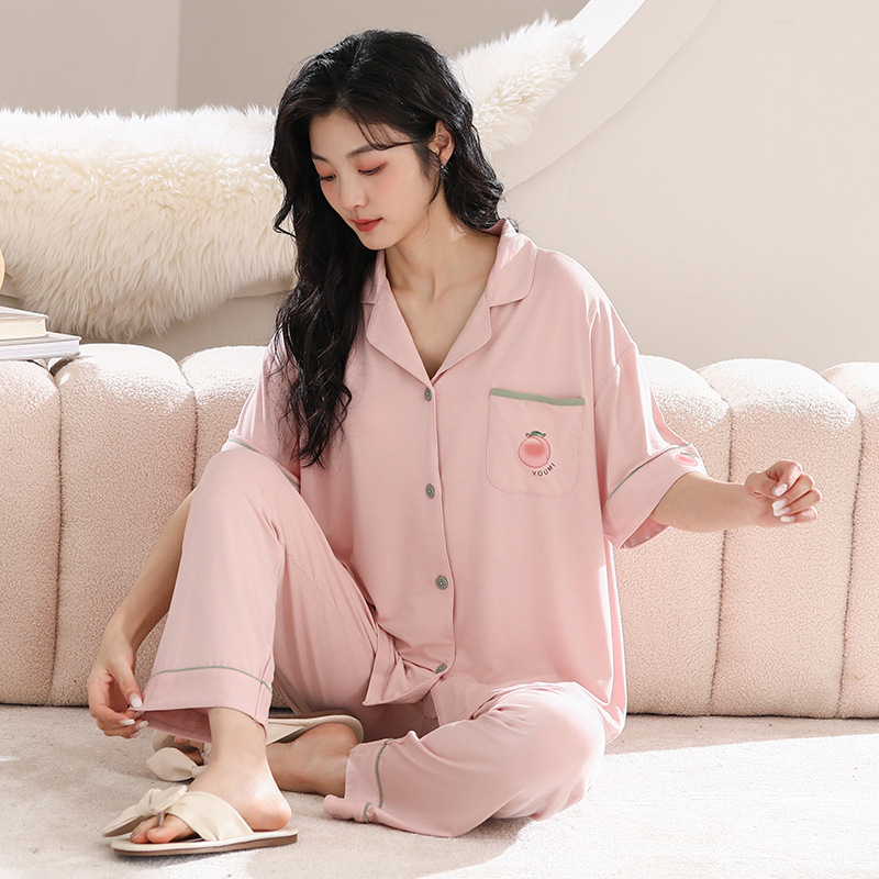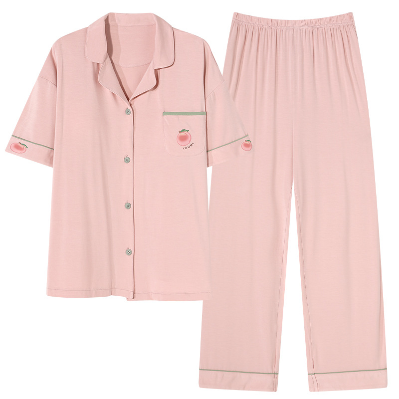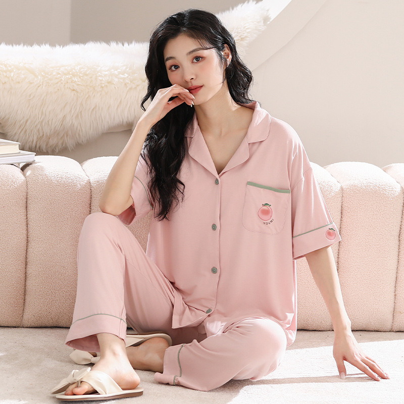 莫代尔睡衣女夏季短袖长裤简约纯色带胸垫可外穿家居服年新款