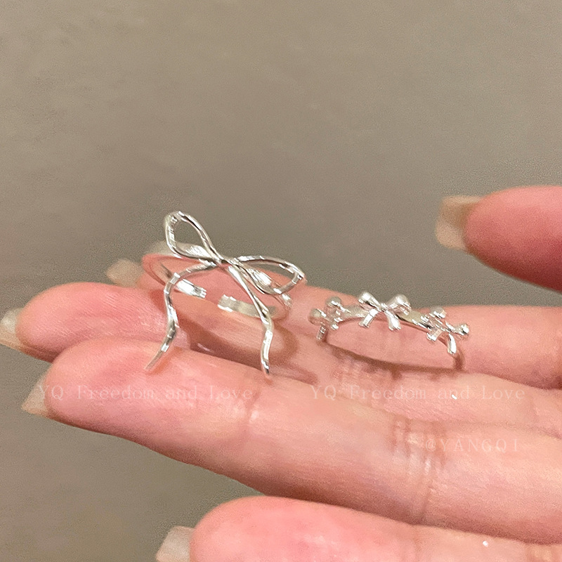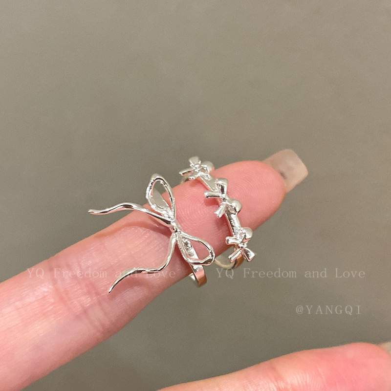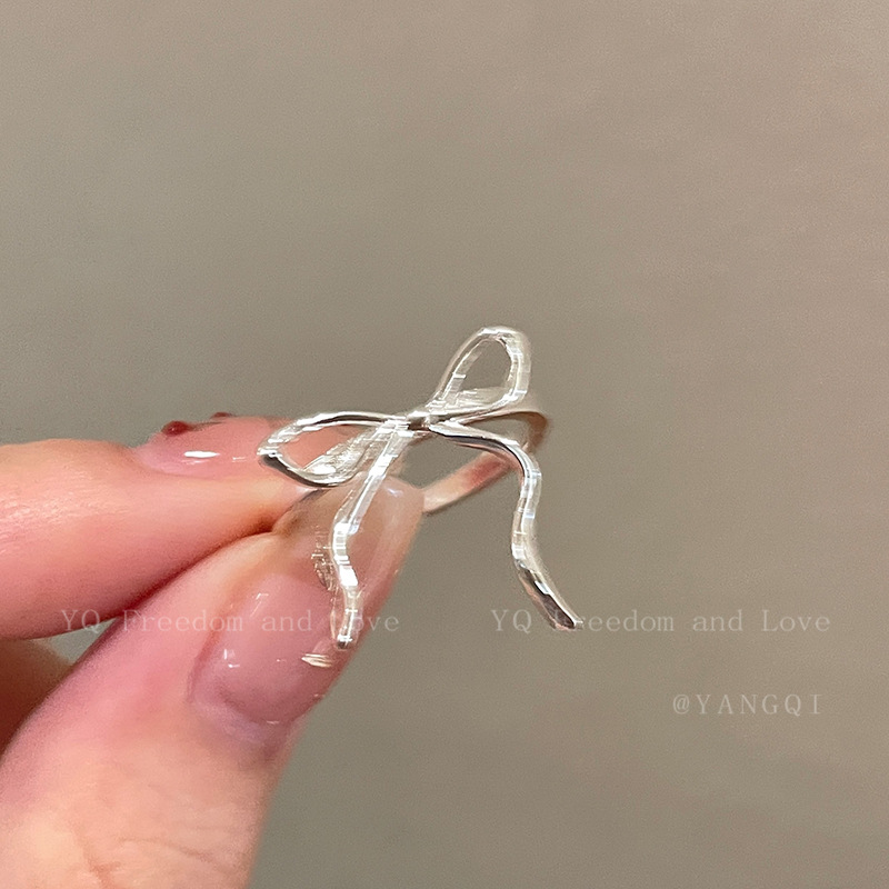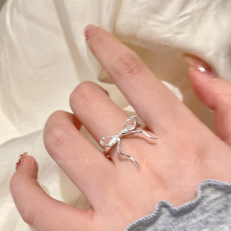 银色飘带蝴蝶结开口戒指可爱开口戒女小众设计高级感指环气质食指