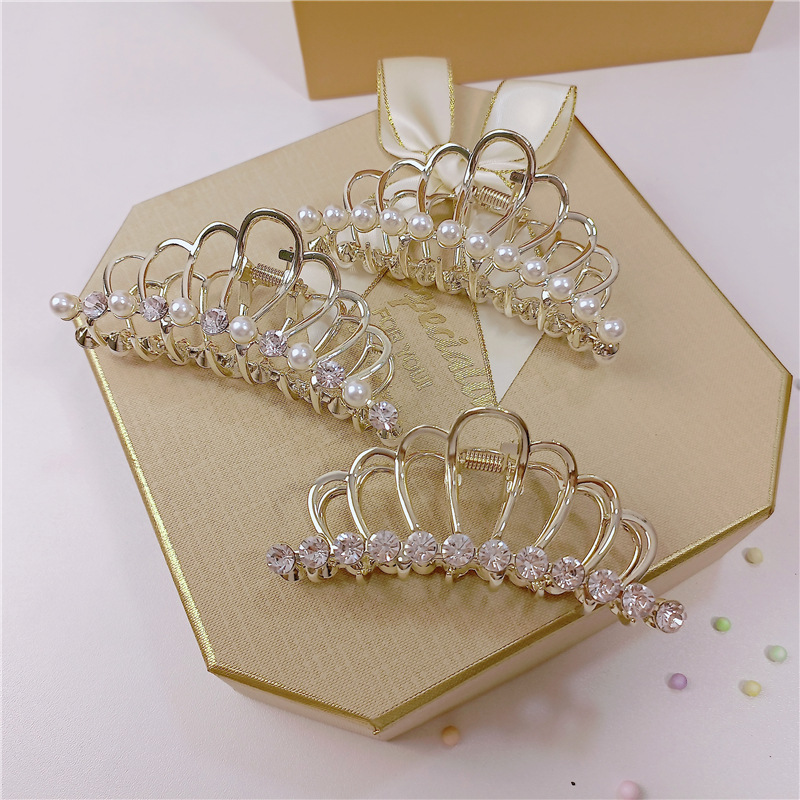 夏季珍珠金属皇冠抓夹大号高级感韩系后脑勺鲨鱼夹发饰女半扎发抓