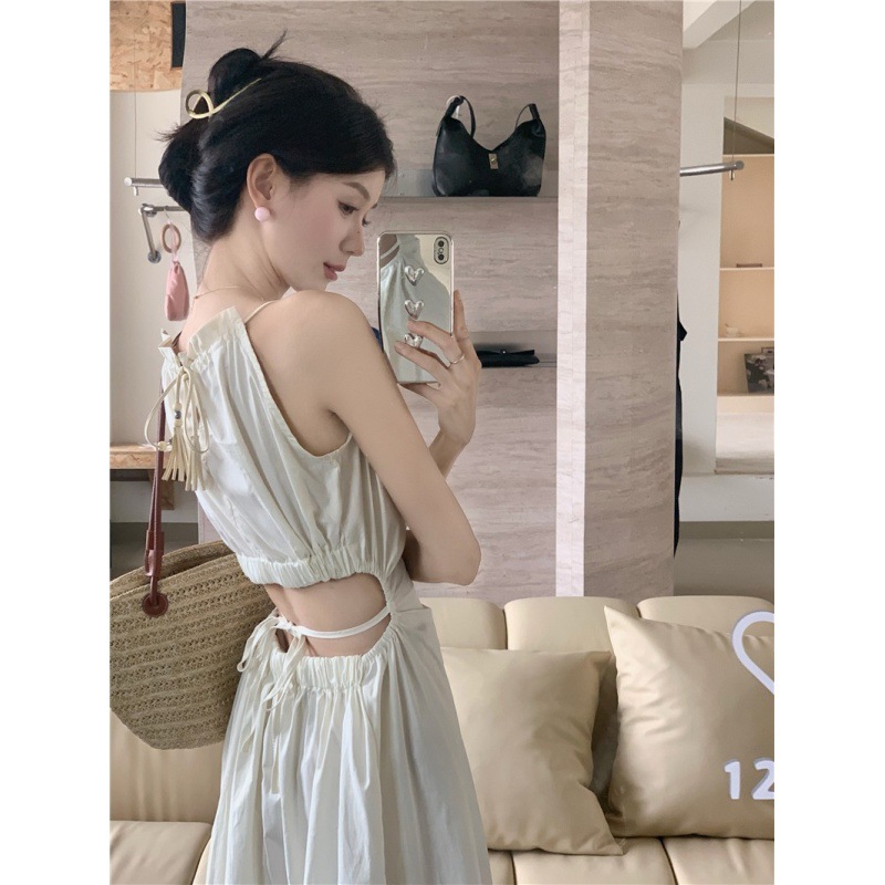 挂脖吊带连衣裙子女夏季设计感镂空露腰显瘦气质海边沙滩度假长裙