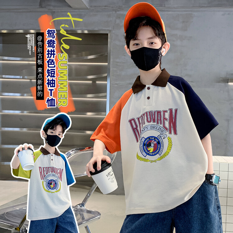 夏季新款中大男童短袖t恤个性男孩宽松体恤透气童装儿童T恤撞色潮