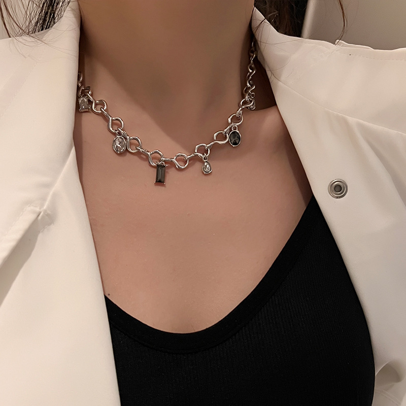 小众设计水晶圆圈链条项链 ins冷淡风个性甜酷辣妹颈链春夏锁骨链