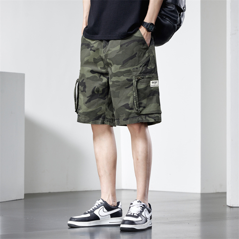 美式复古迷彩工装短裤男夏季薄款潮牌重磅宽松休闲拉链口袋五分裤