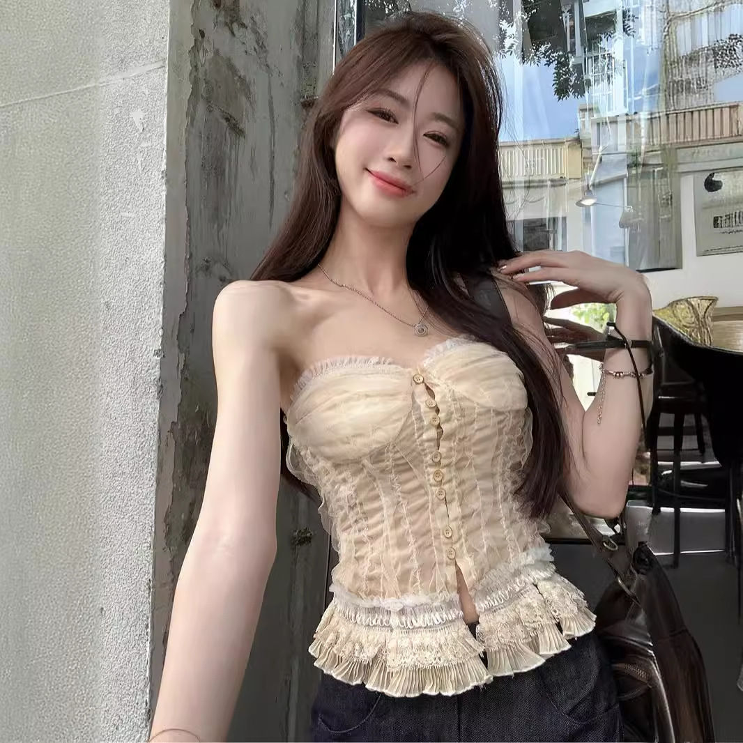 蕾丝花边抹胸吊带背心女夏季新款法式复古修身显瘦宫廷风无袖上衣