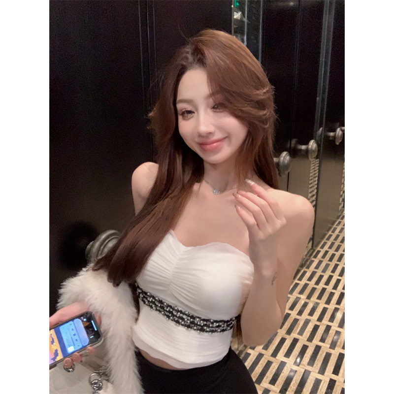 法式纯欲撞色织带抹胸性感修身磨毛内搭上衣女