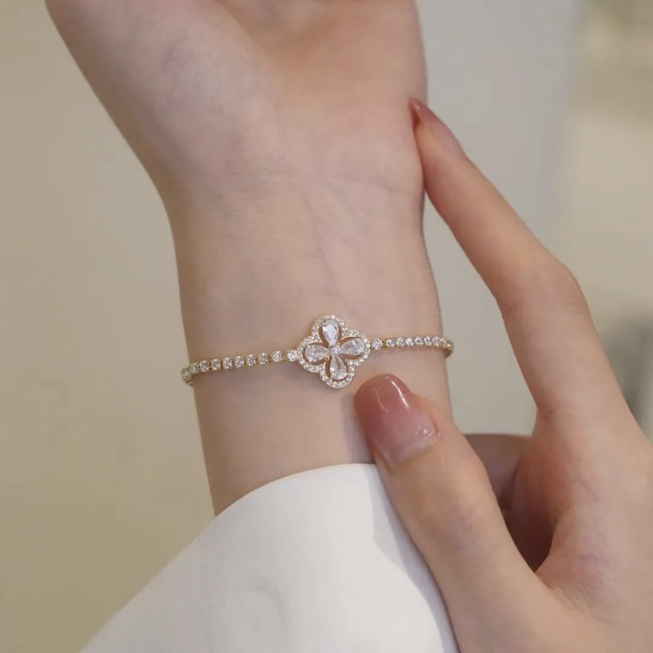四叶草闪钻手链气质轻奢风幸运草手链气质时尚精致手链女