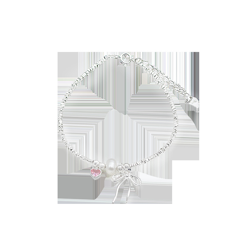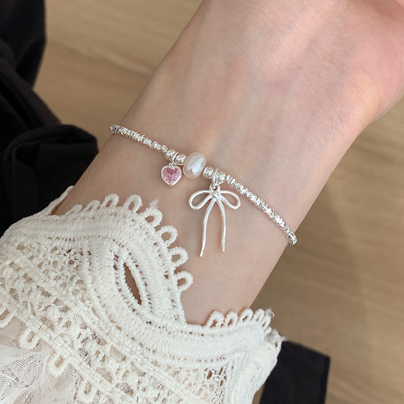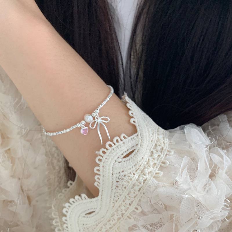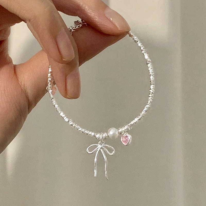 粉心 蝴蝶结 碎银手链
