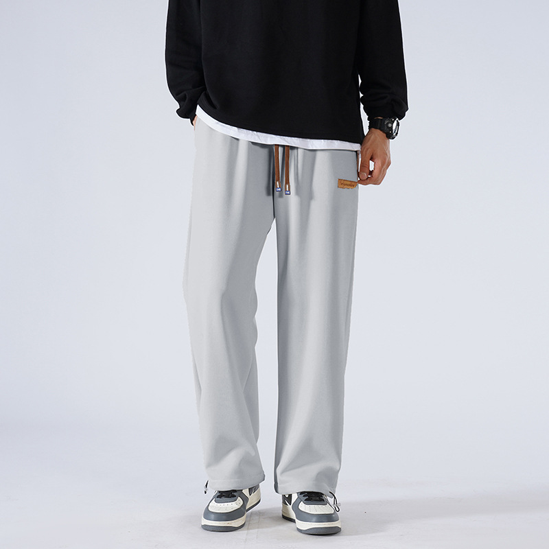 春季轻熟休闲直筒平口束脚宽松直筒束脚长裤男士超真柔休闲裤