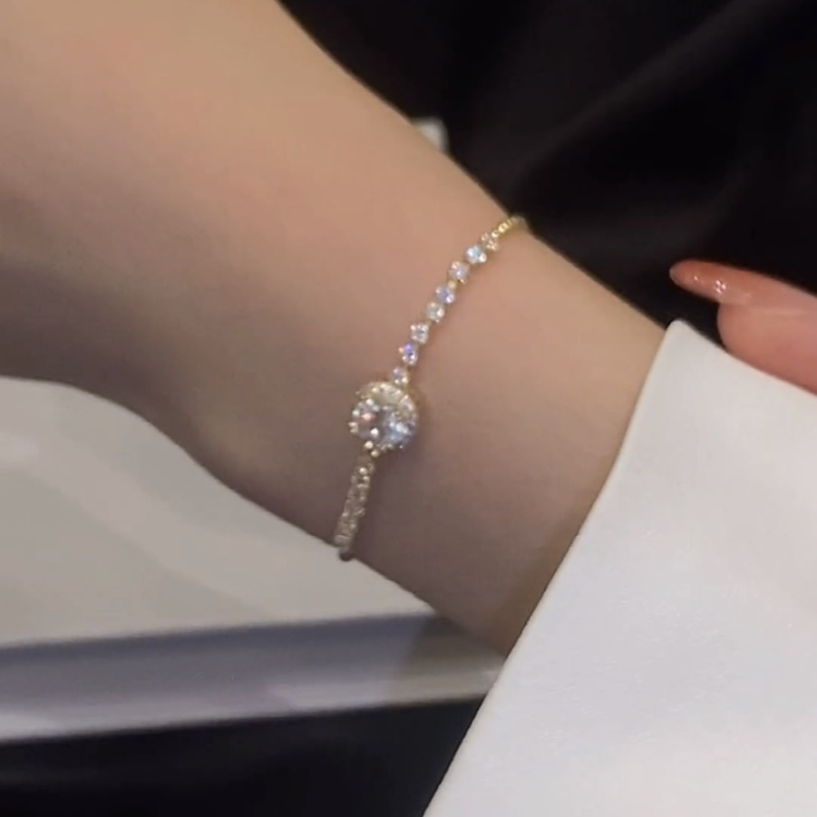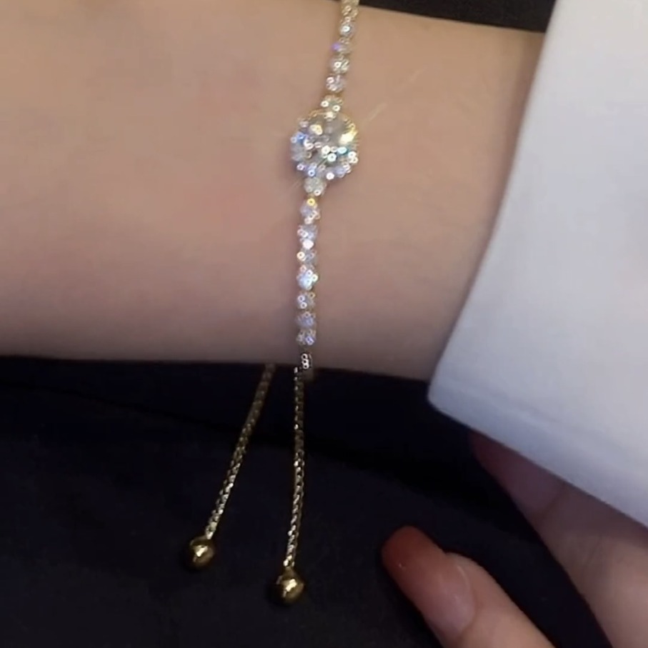 闪钻锆石手链可抽拉调节精致轻奢风微镶锆石水晶手链金色方形锆石
