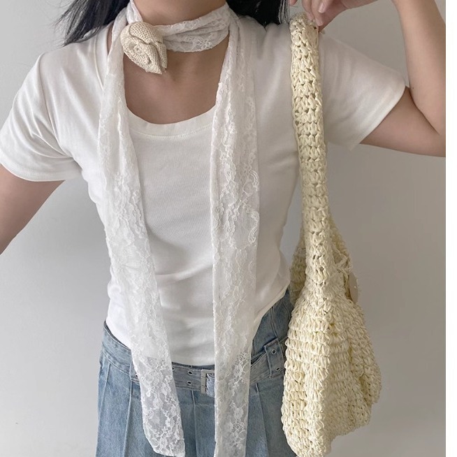 蕾丝细围巾柔软亲肤飘带 玫瑰choker千禧风辣妹围脖夏腰带腰绳