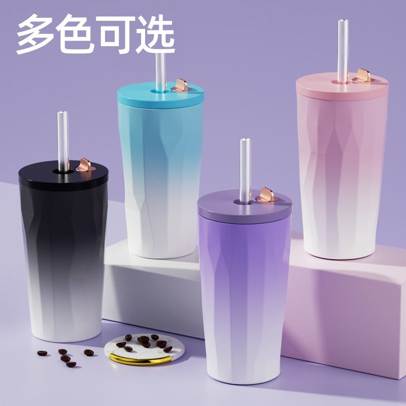 新款渐变色高颜值咖啡杯直饮简约不锈钢保温杯女生便携水杯