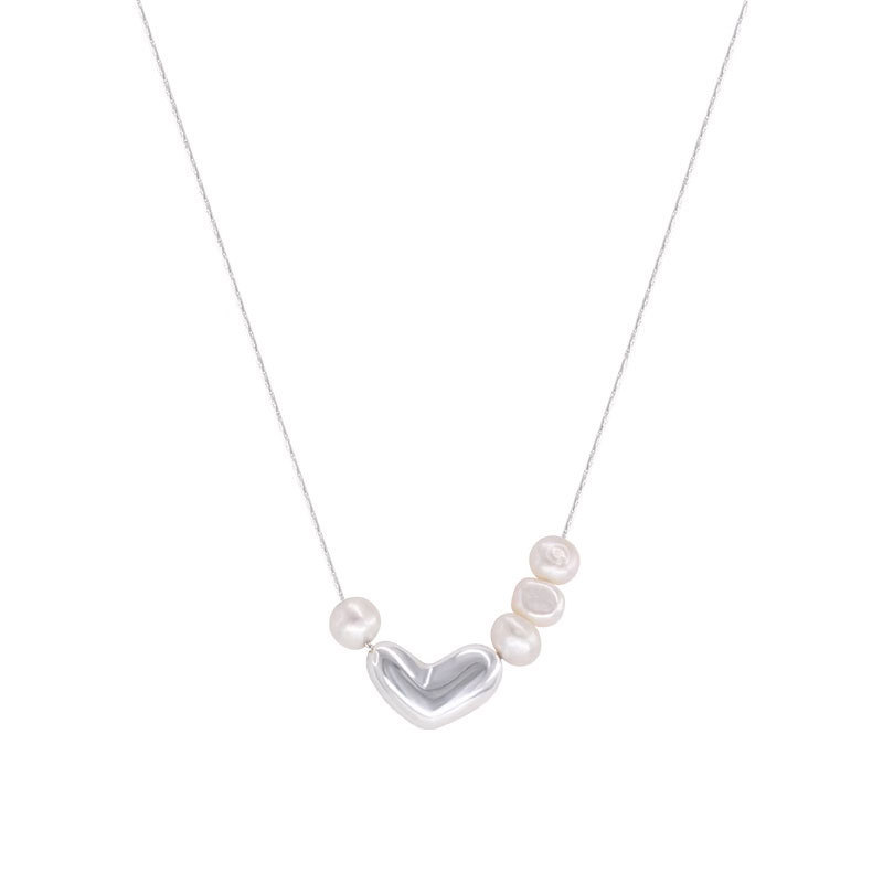 天然珍珠爱心项链不规则扁豆爱心珍珠锁骨链女法式轻奢小众叠戴