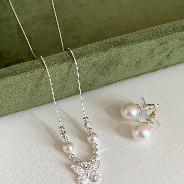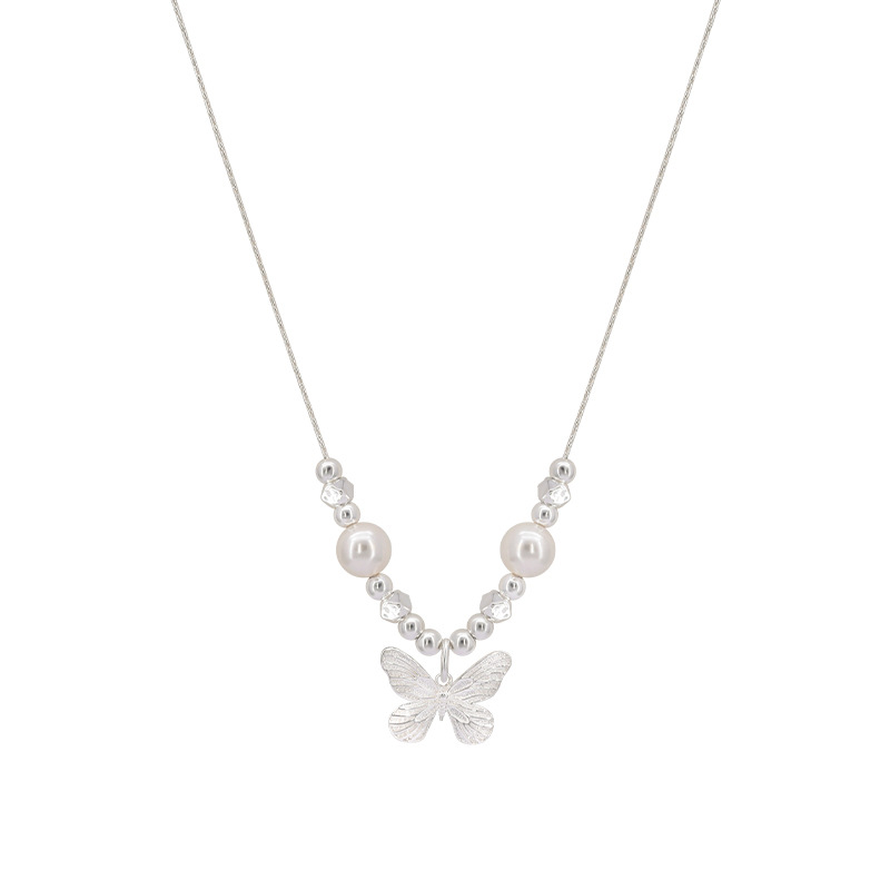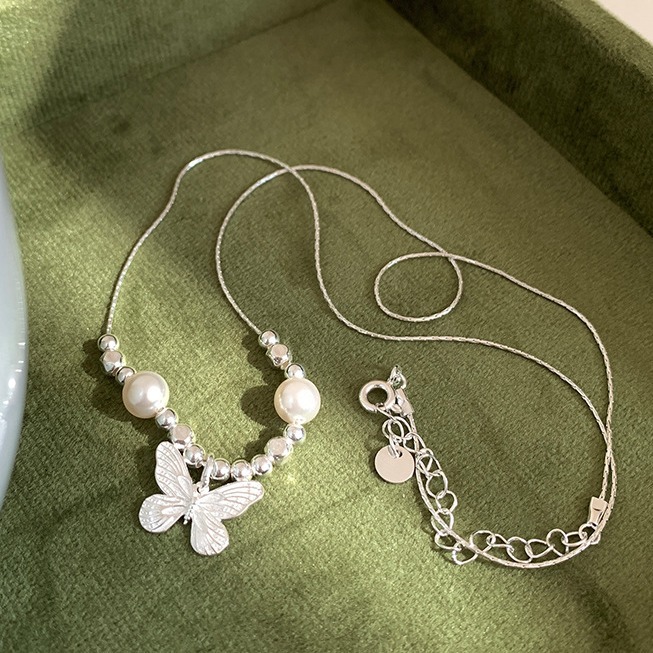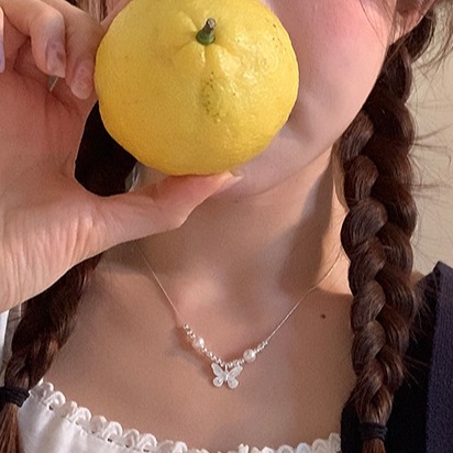 度假蝴蝶碎银蝴蝶珍珠项链气质小众女轻奢高级感气质温柔锁骨链女