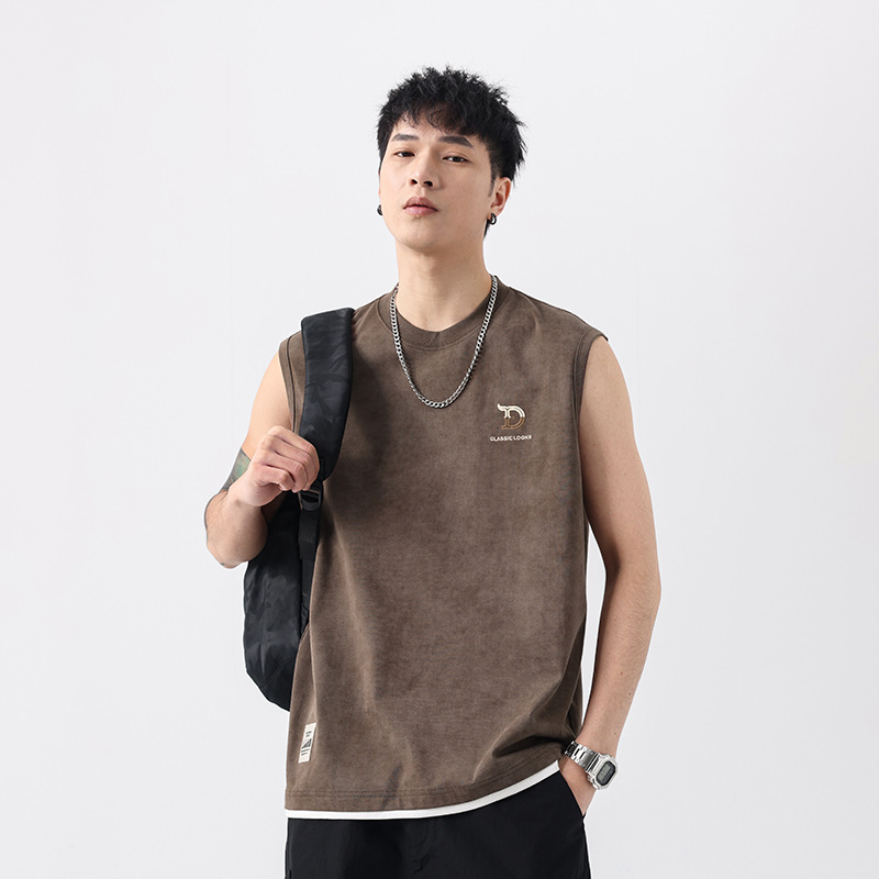 美式高街重磅纯棉背心男宽松大码痞帅运动坎肩夏季ins潮牌无袖T恤