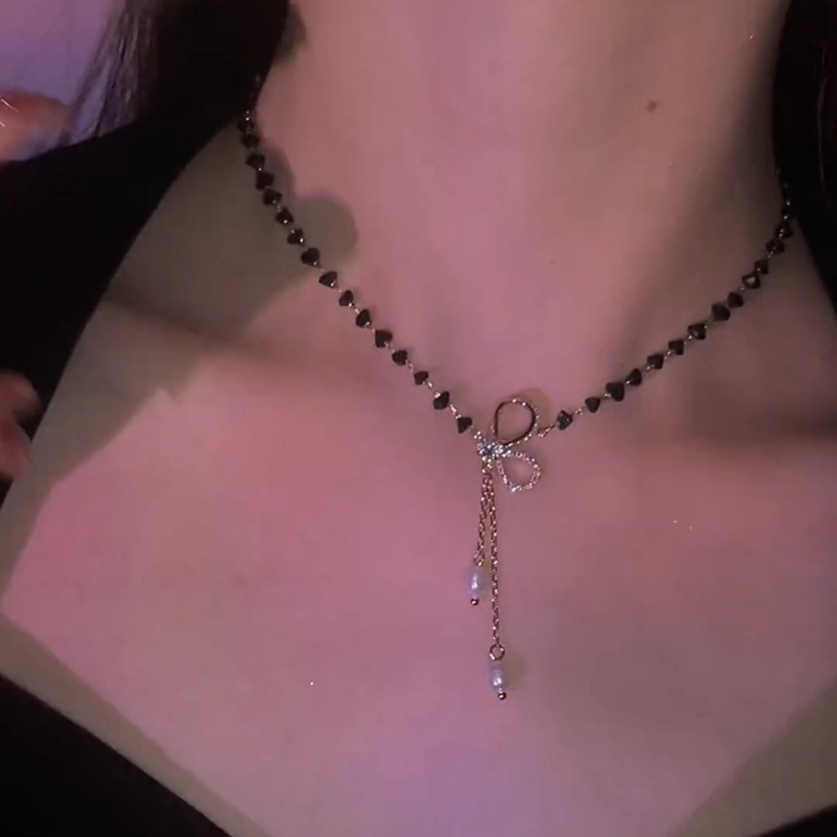 黑色蝴蝶水晶项链抖音同款气质蝴蝶翩翩锁骨链小清新时尚气质项链