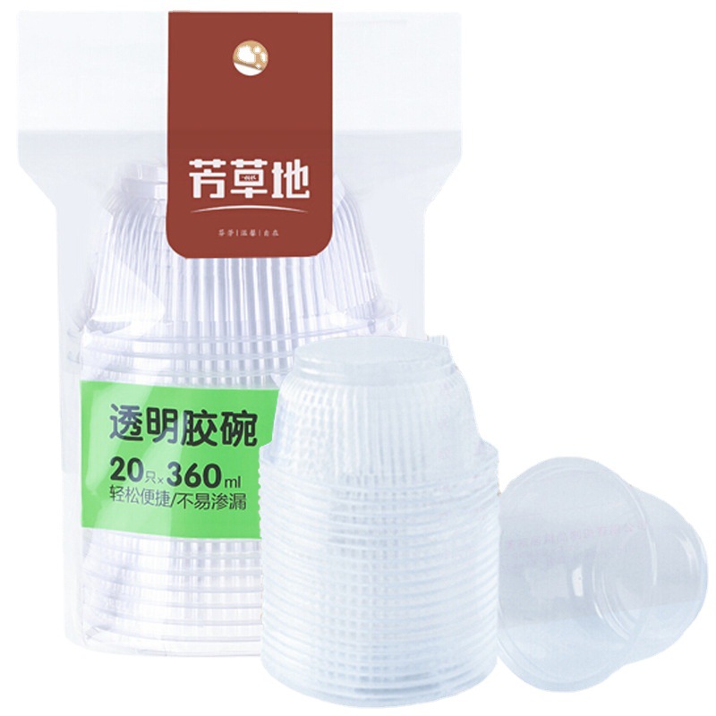 芳草地一次性汤碗不带盖塑料圆形餐碗20只装家用宴席饭碗百货