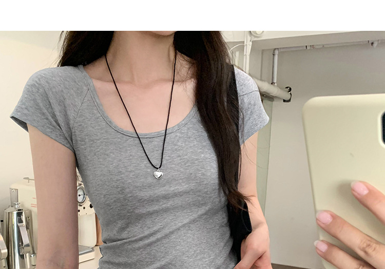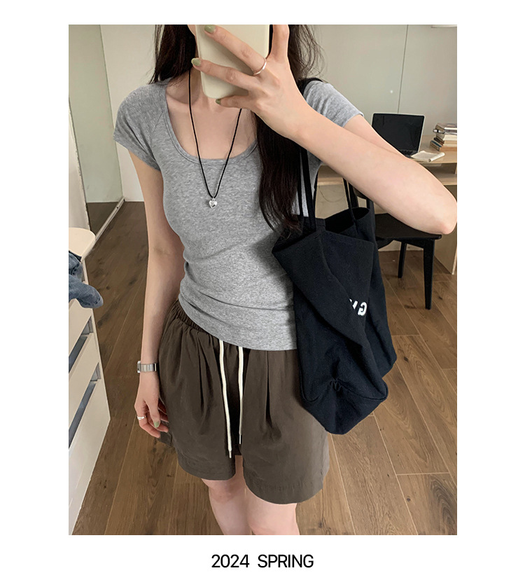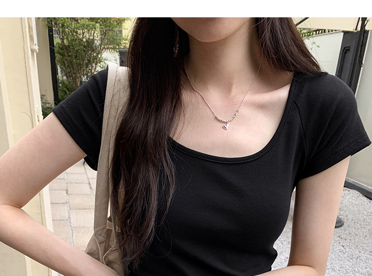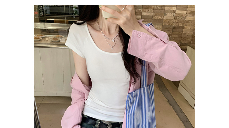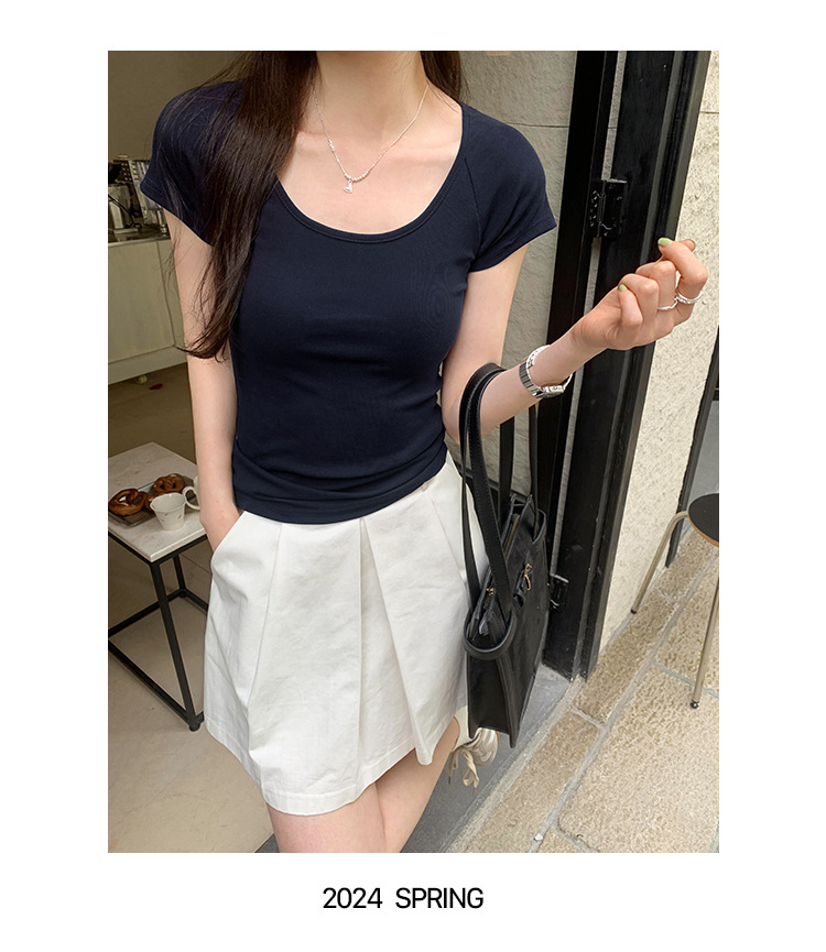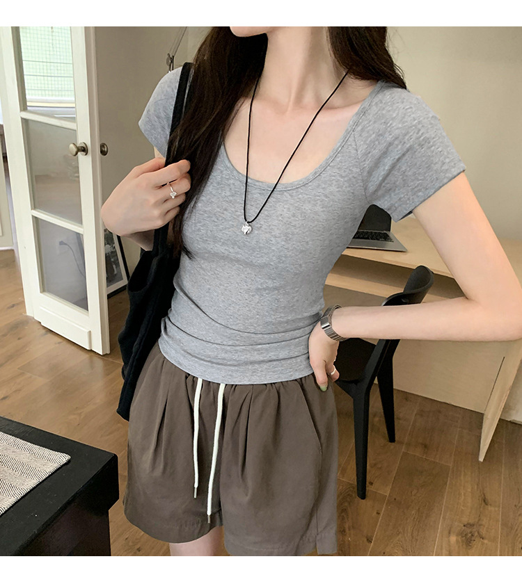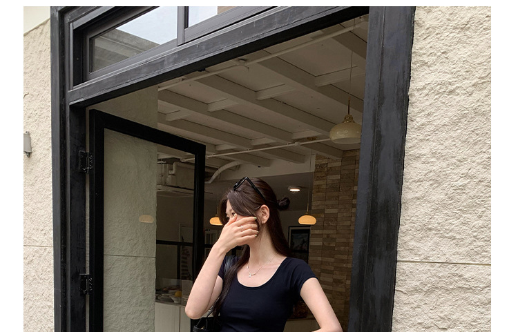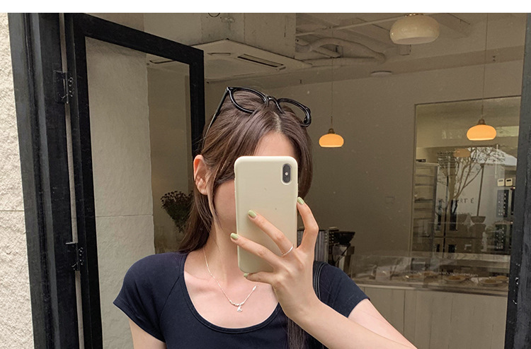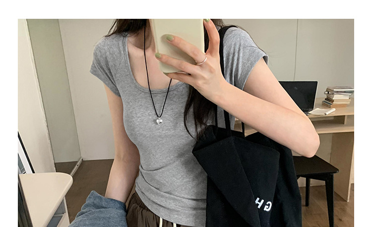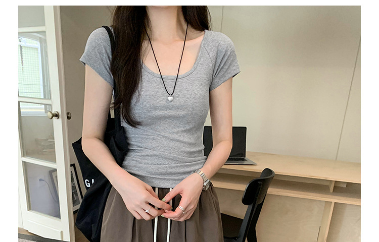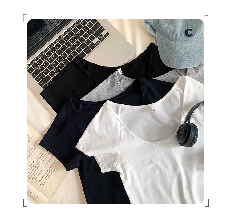 基础百搭低圆领插肩袖短袖t恤女夏季纯色大领口修身显瘦通勤上衣
