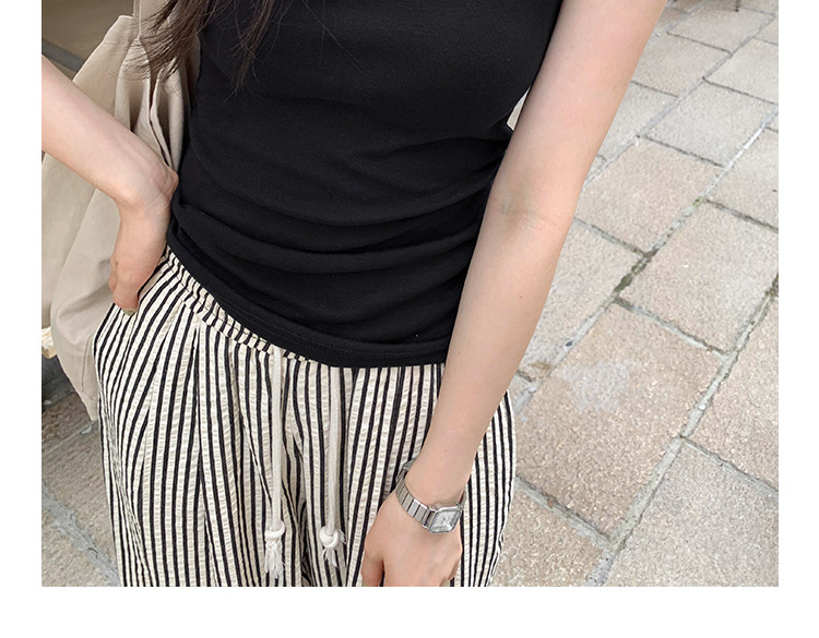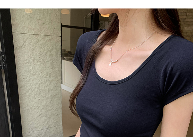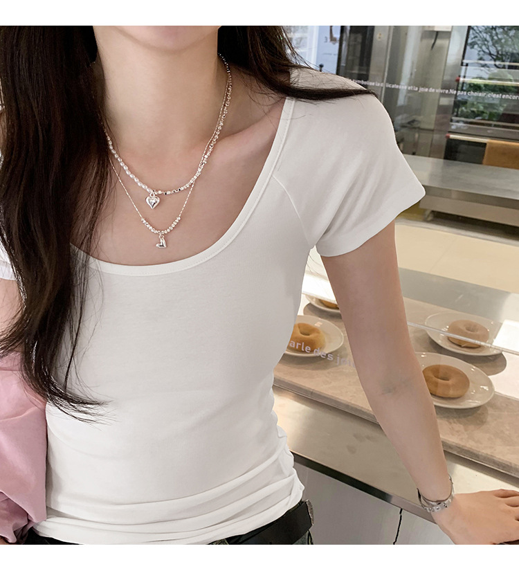 设计感荡领修身显瘦弹力短袖T恤女夏季新款一字斜肩短款上衣