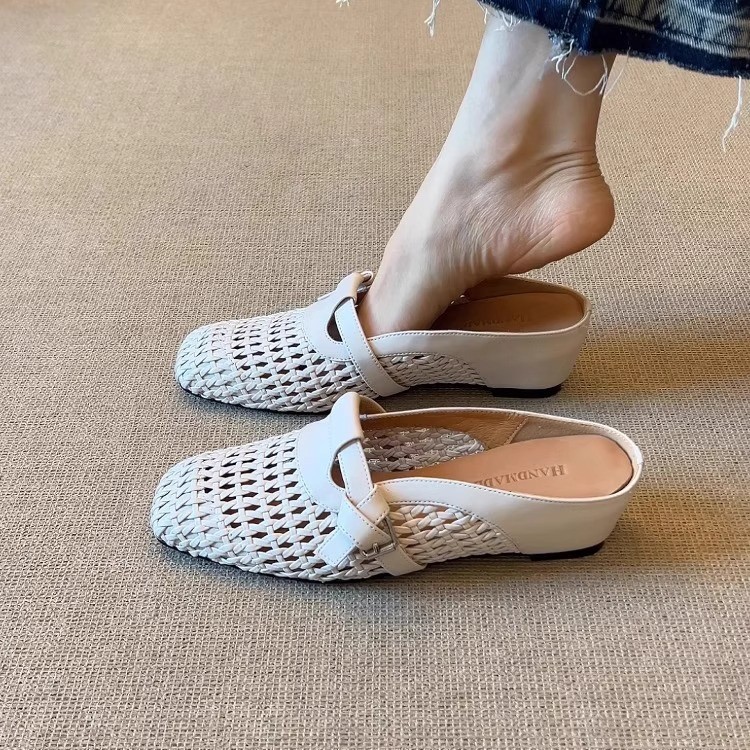 2025新款6cm内增高法式编织镂空包头凉鞋百搭舒适一字带外穿凉拖