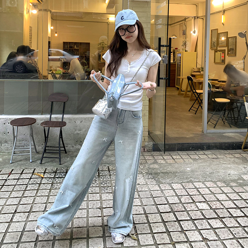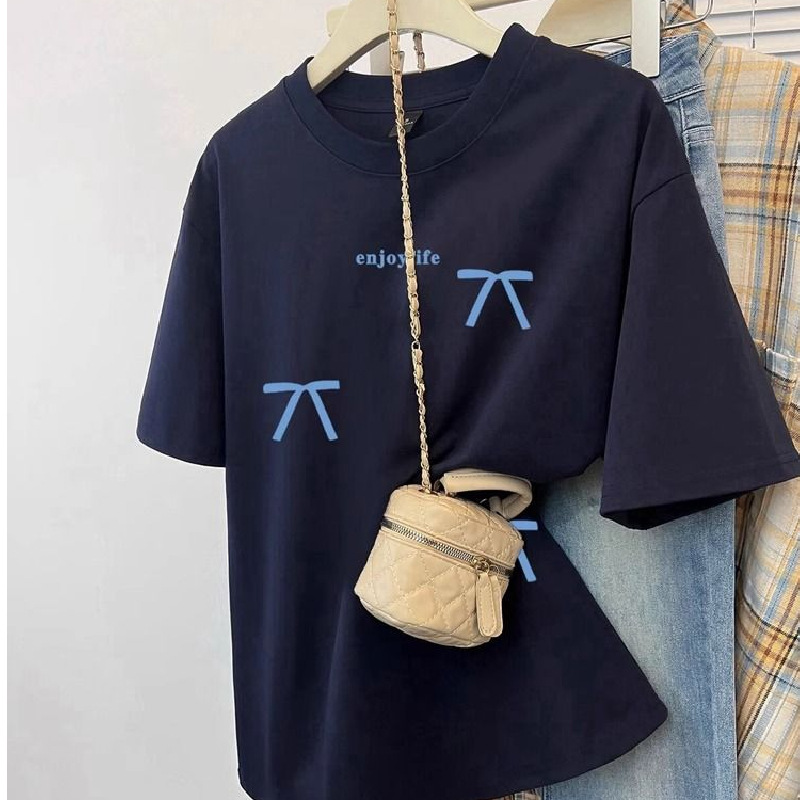 甜美小个子减龄圆领蝴蝶结印花短袖T恤女夏季新款宽松显瘦上衣服