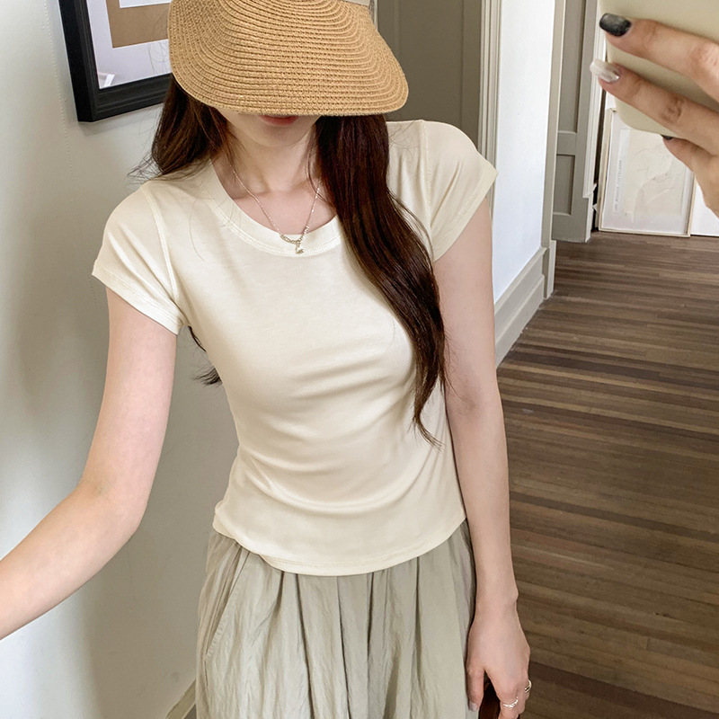 天丝羊毛柔软亲肤正肩基础款高品质短袖T恤女夏季新款超好看上衣