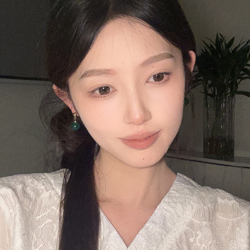 新中式绿色圆球耳环气质复古独特高级感耳钉国风清冷感耳饰女