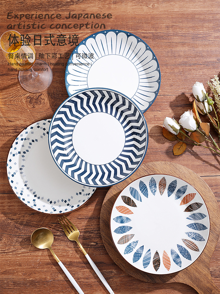 日式8英寸陶瓷盘子釉下彩家用菜盘网红餐盘ins餐具高颜值碟子深盘