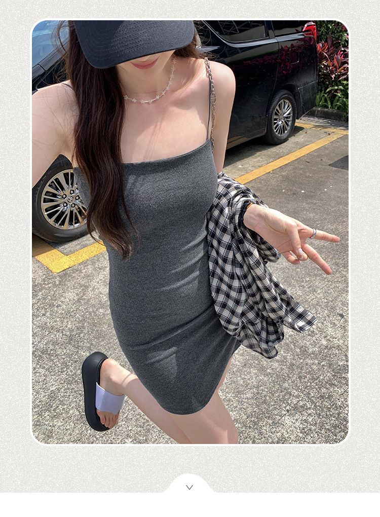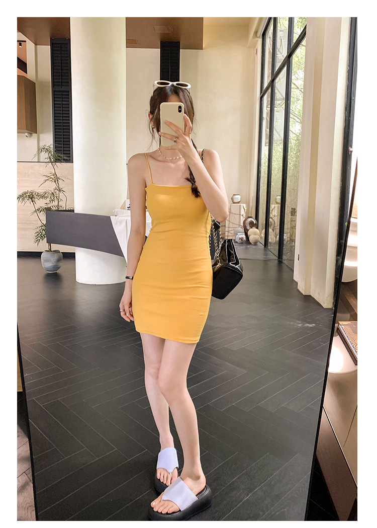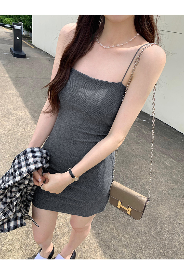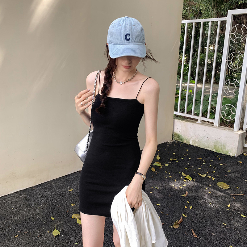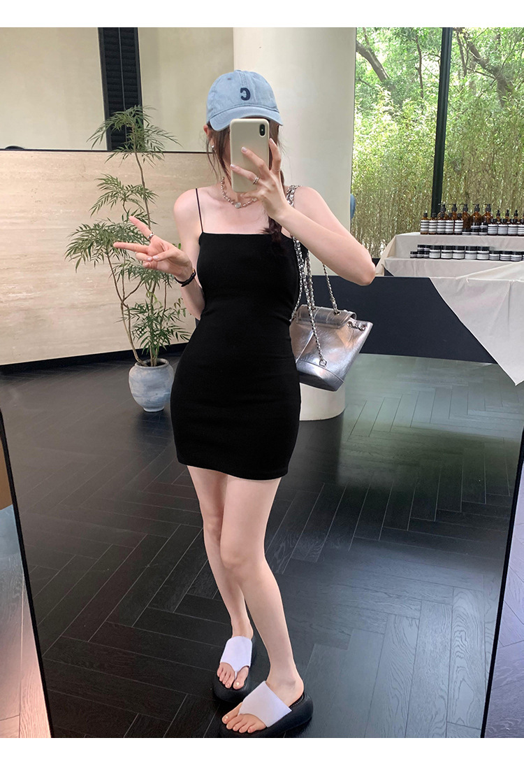 韩系简单大方吊带连衣裙子女新款夏季轻奢高级感气质包臀短裙