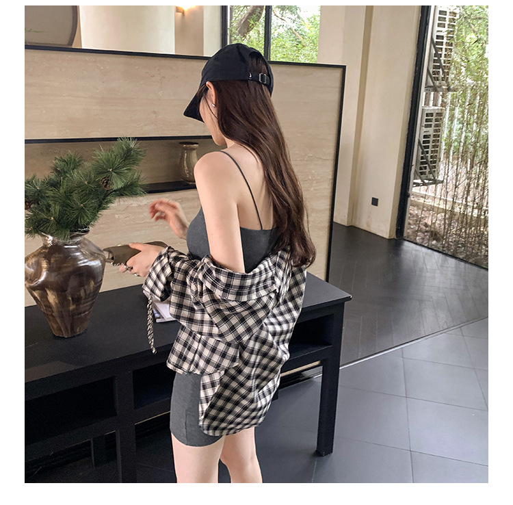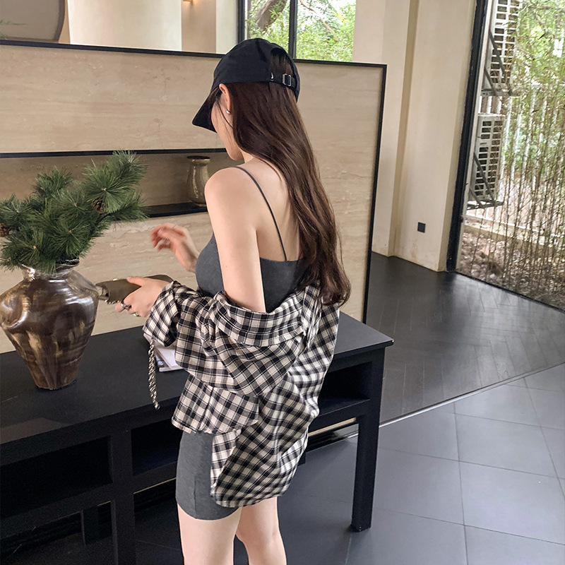 新品套装2025夏季新款韩版女童格子无袖上衣短裤长裤中小童三件套