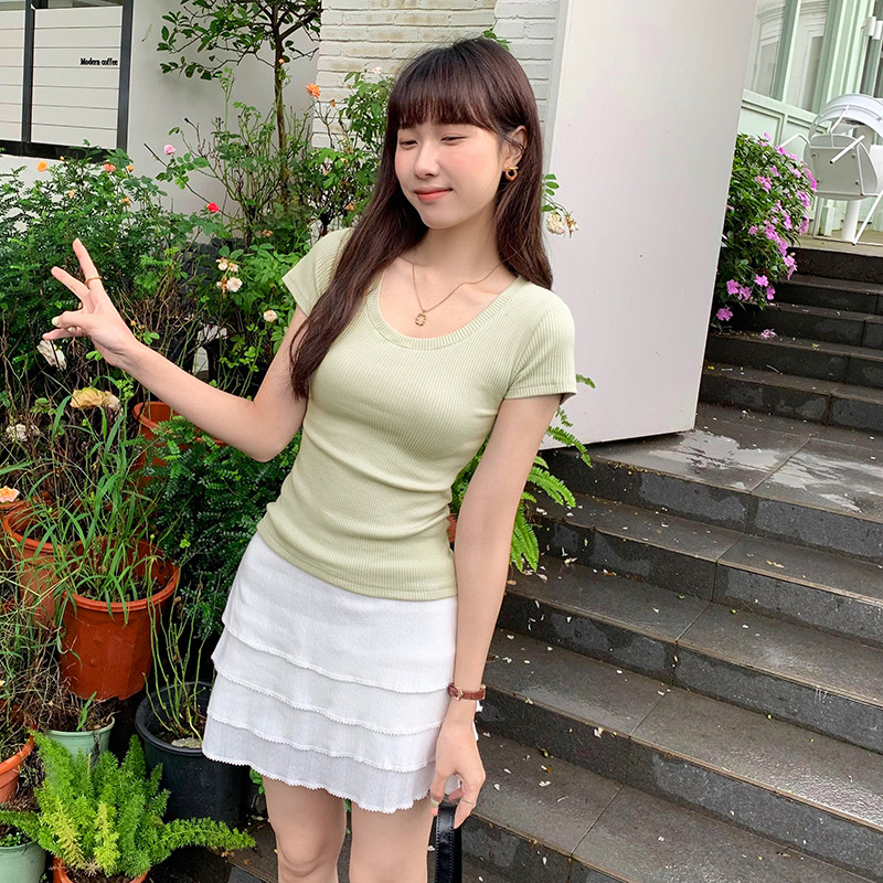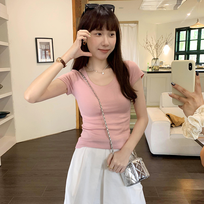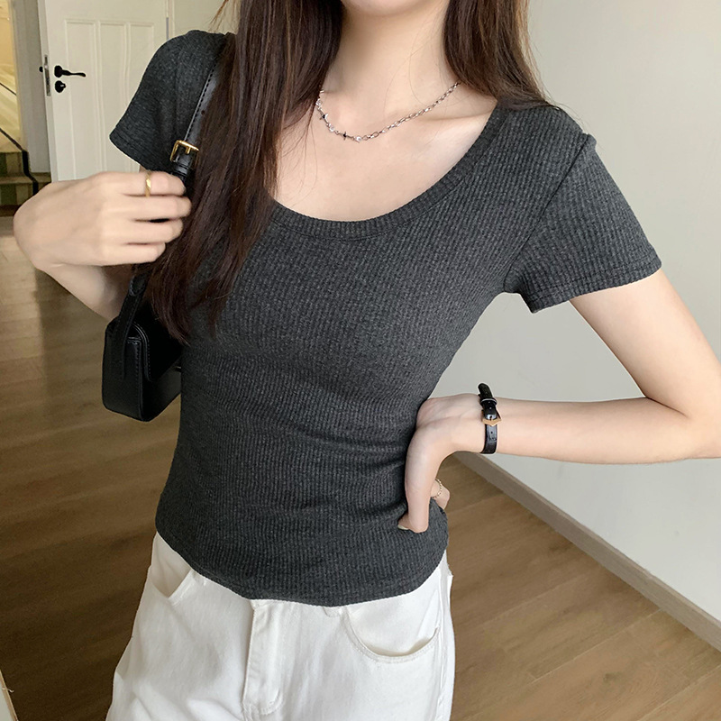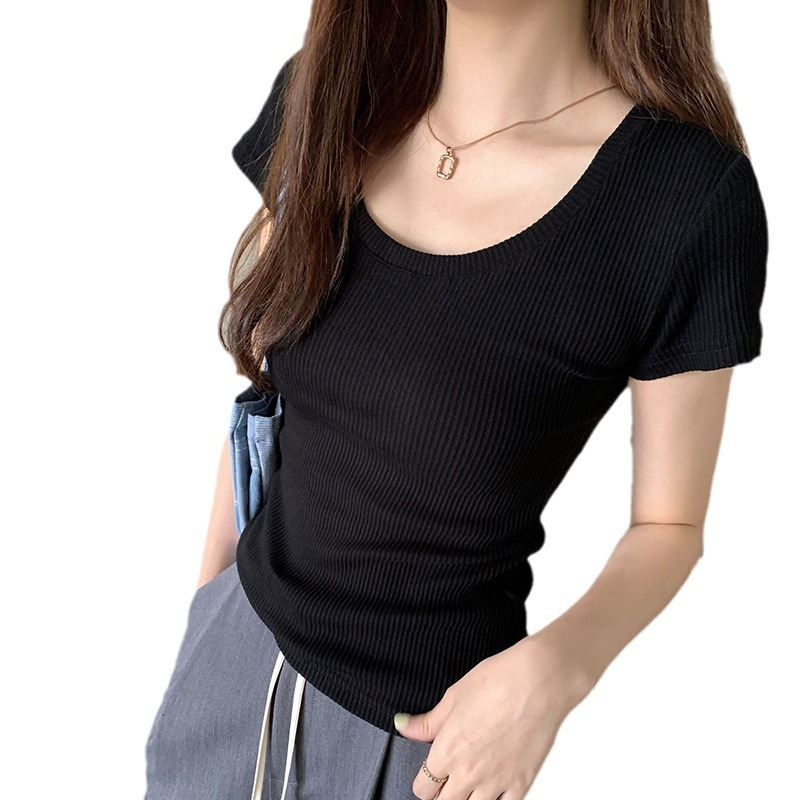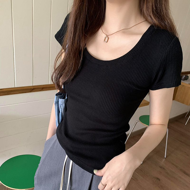 韩系慵懒风高端抗条短袖T恤女夏季新款爆款气质正肩短款上衣
