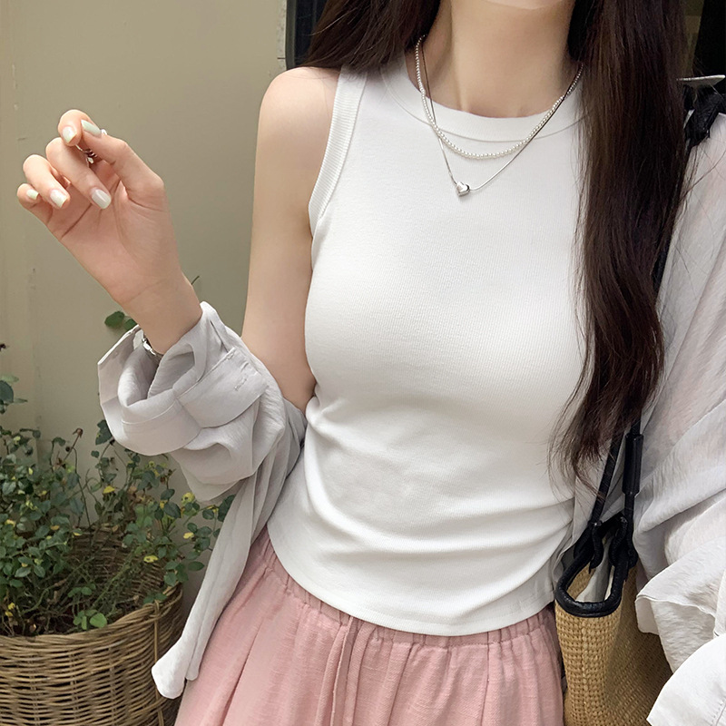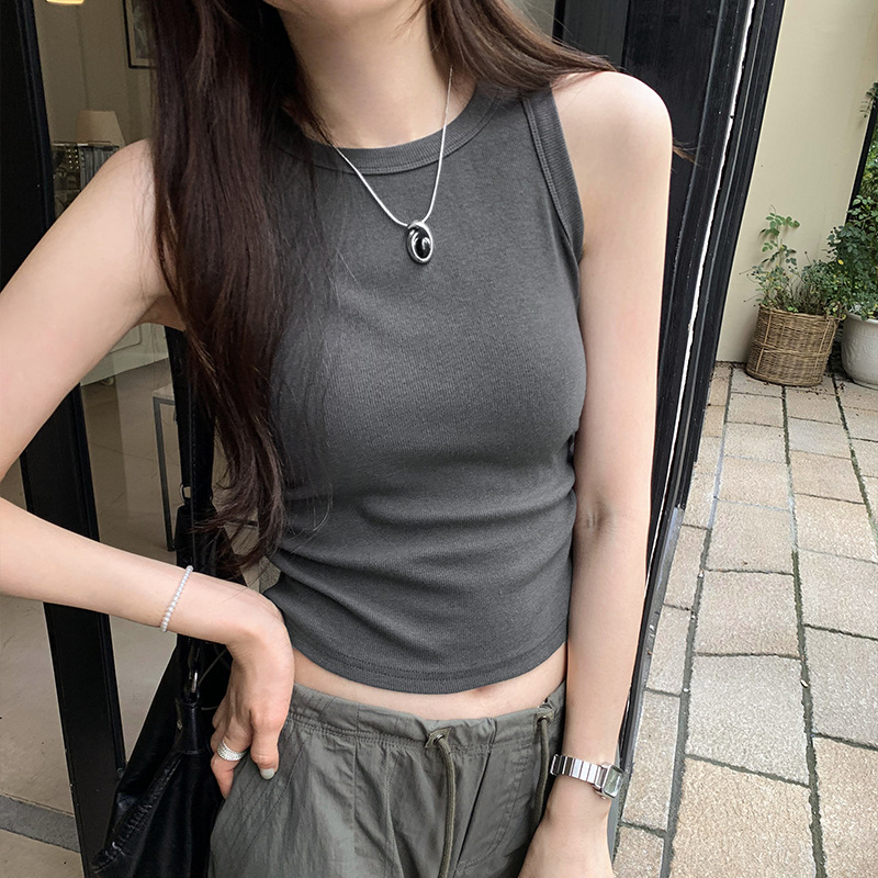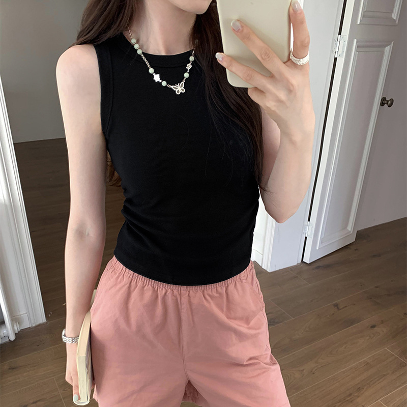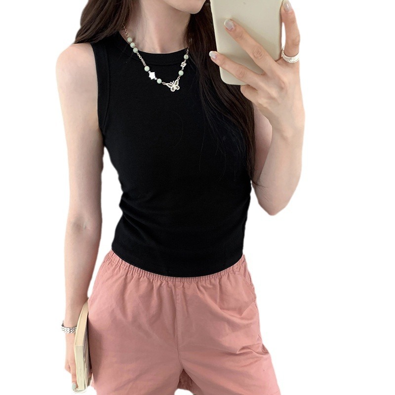美式复古收腰抽褶无袖工字背心女夏新款运动外穿内搭打底上衣