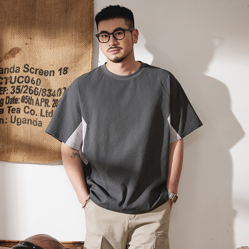 夏季新款华夫格短袖男士2025年休闲易打理肌感凉感圆领t恤男装潮
