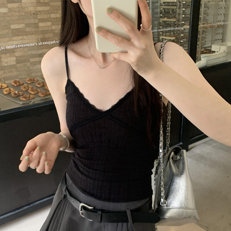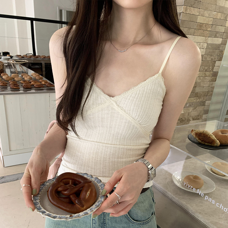 泰式辣妹花边拼接吊带女夏季新款防走光V领性感短款小背心