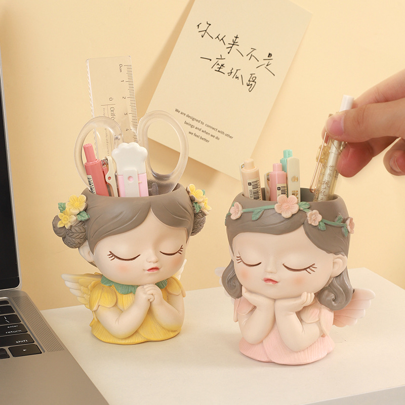 童话精灵桌面学生卡通天使笔筒学习文具收纳创意礼品树脂工艺品