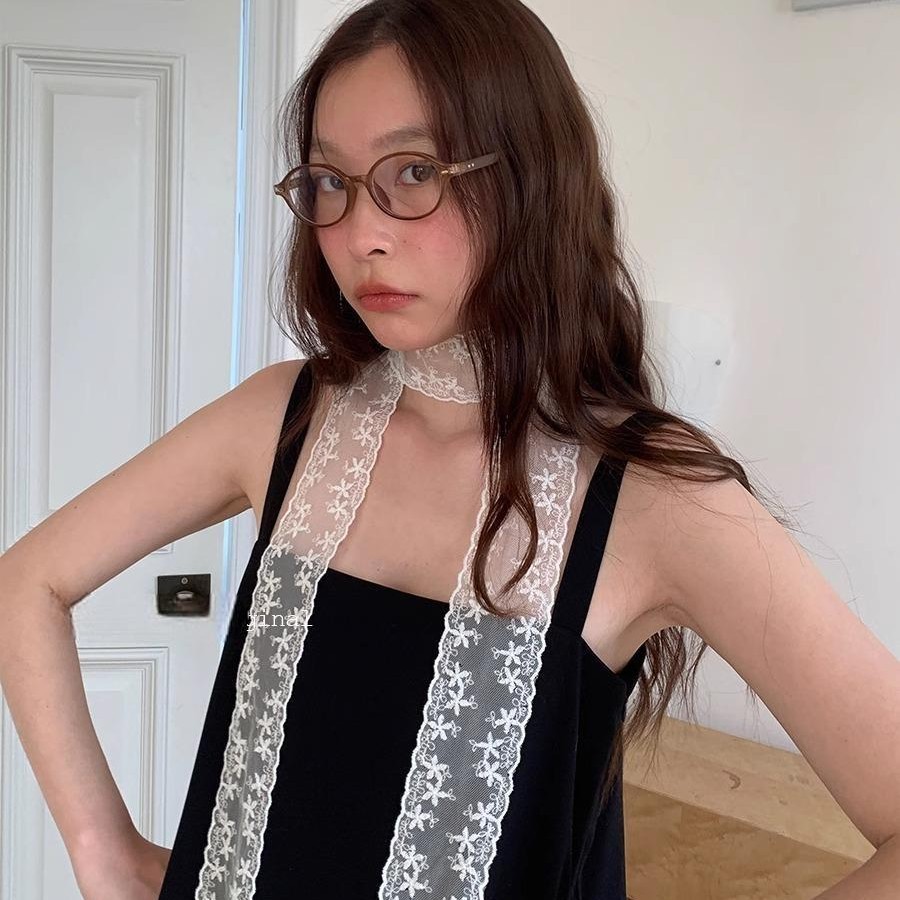 丝巾韩国新款蕾丝花卉细围巾女春夏百搭装饰细窄领巾腰带ins简约