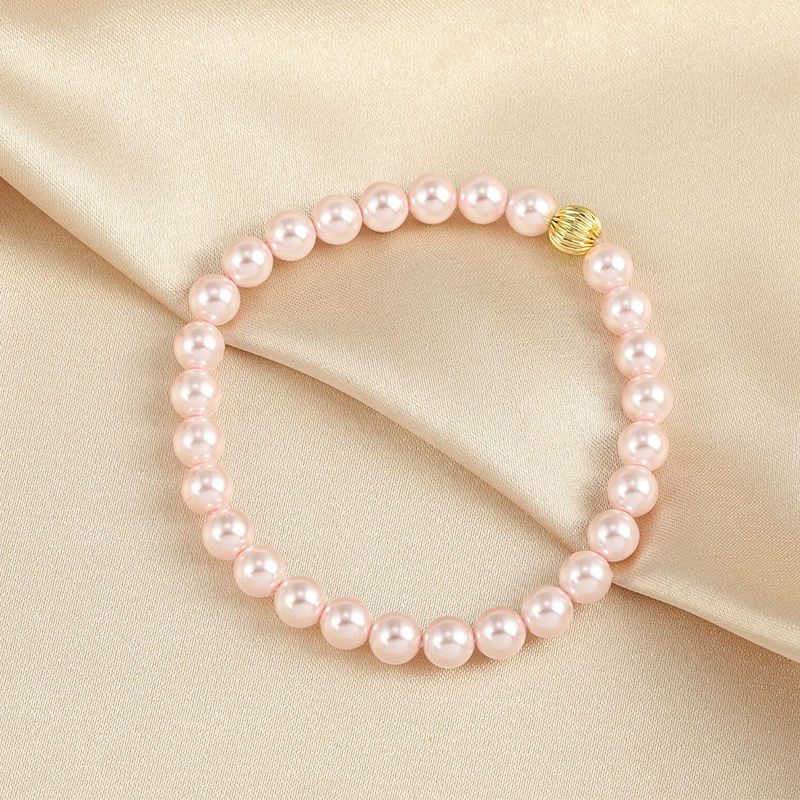 新款施家珍珠手链南瓜圆珠弹力绳手串小清新粉色高级感配饰百搭女