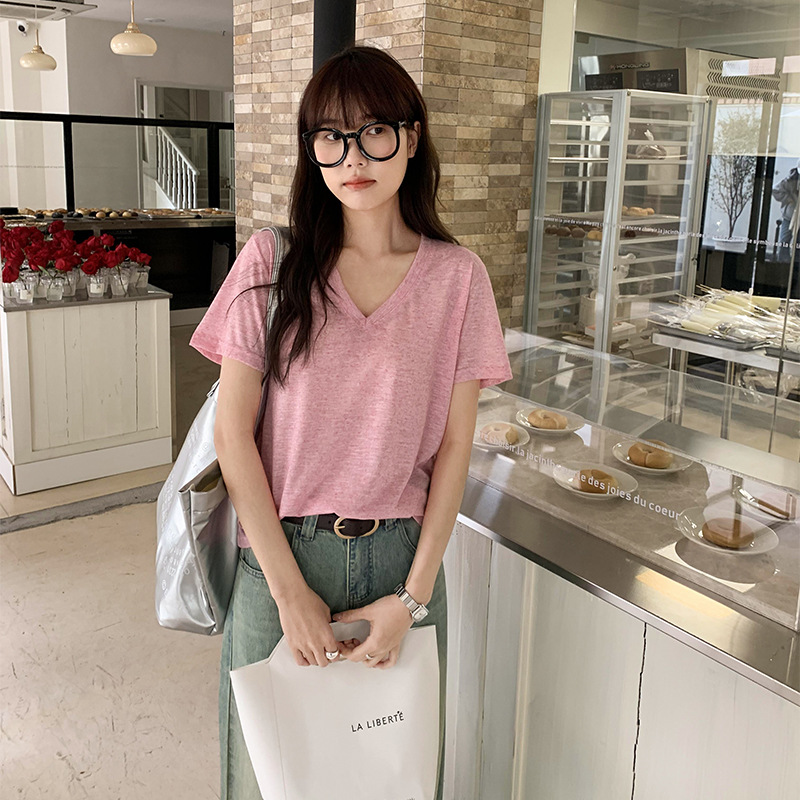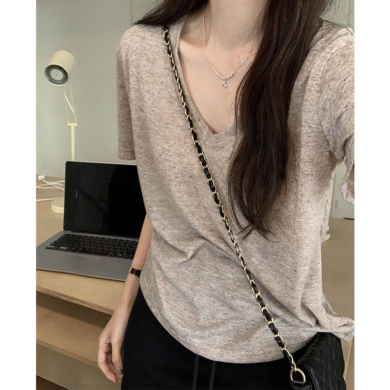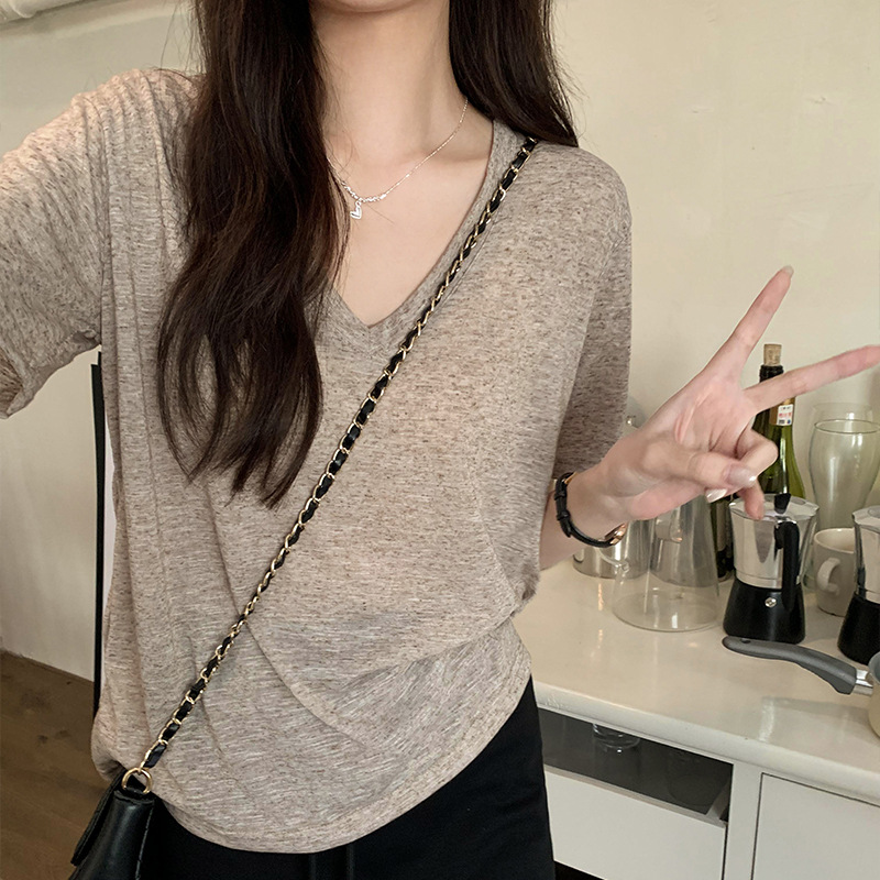 灰色正肩短袖t恤女夏季新款宽松设计感小众半袖体恤慵懒上衣