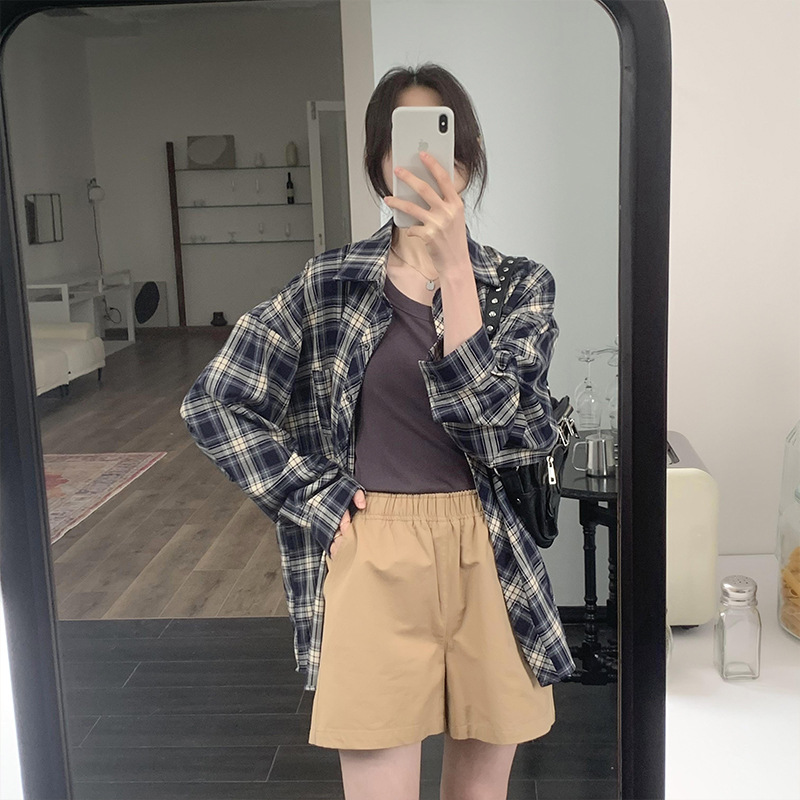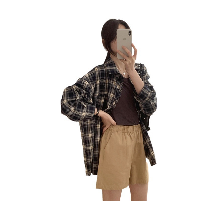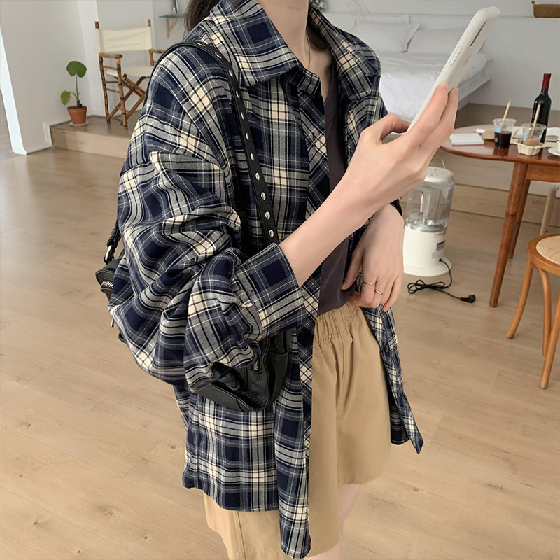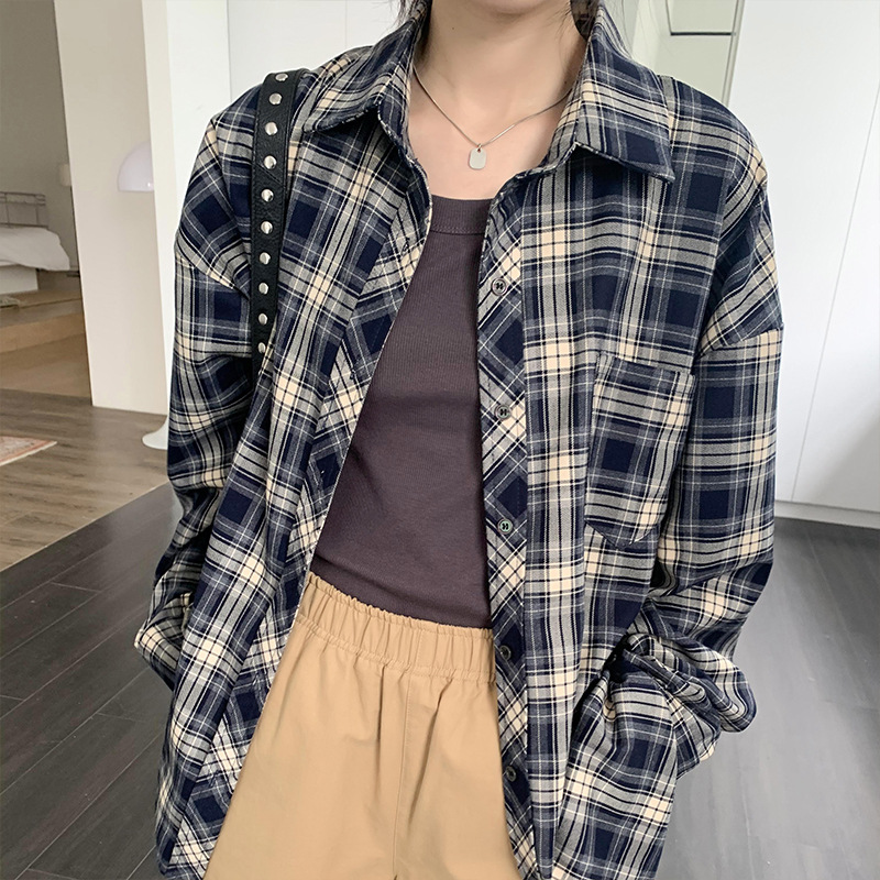 韩版设计感小众格子衬衫女秋季新款宽松百搭长袖上衣开衫外套