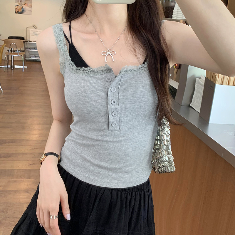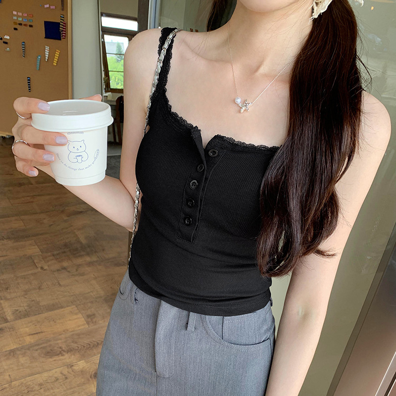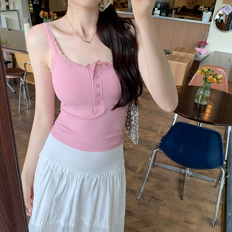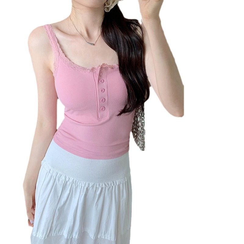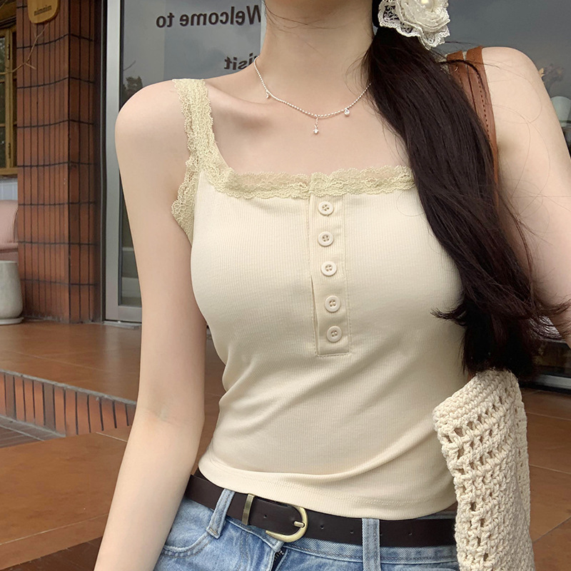 小众别致纯欲蕾丝花边半开领带胸垫吊带背心女夏新款内搭外穿上衣