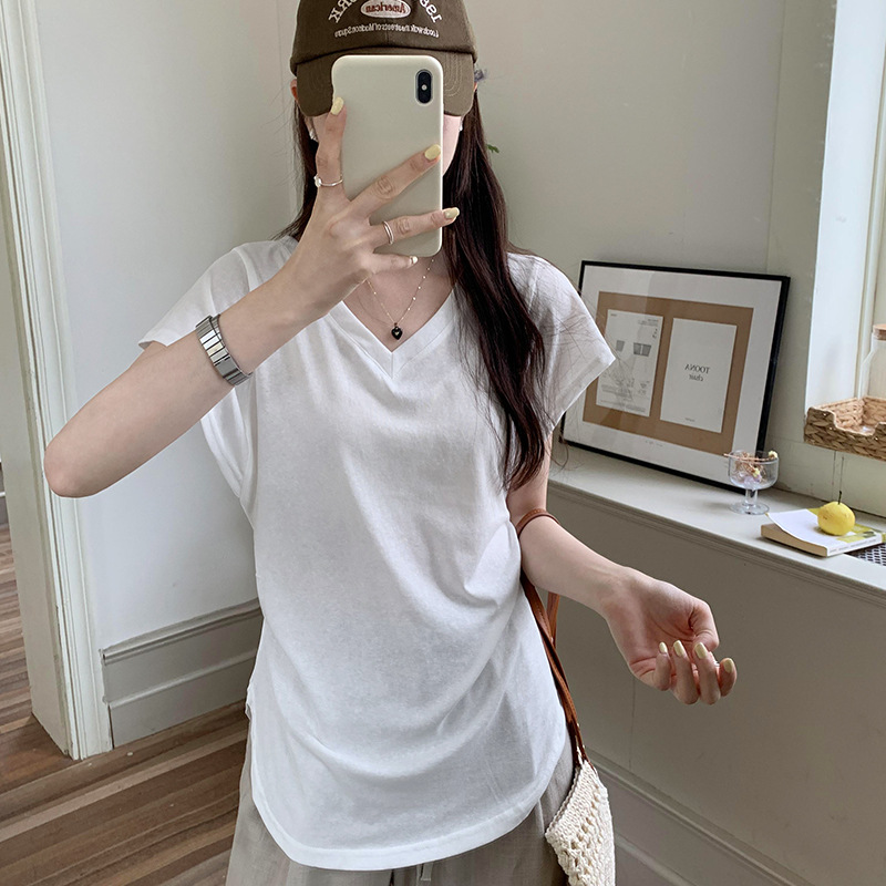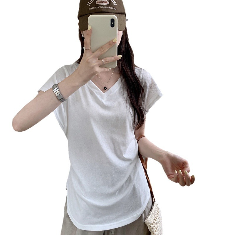 2025夏季新款正肩纯棉蝴蝶短袖T恤女时尚百搭减龄显瘦白色上衣ins