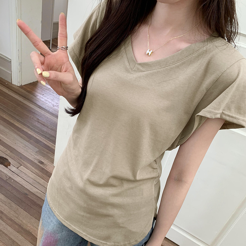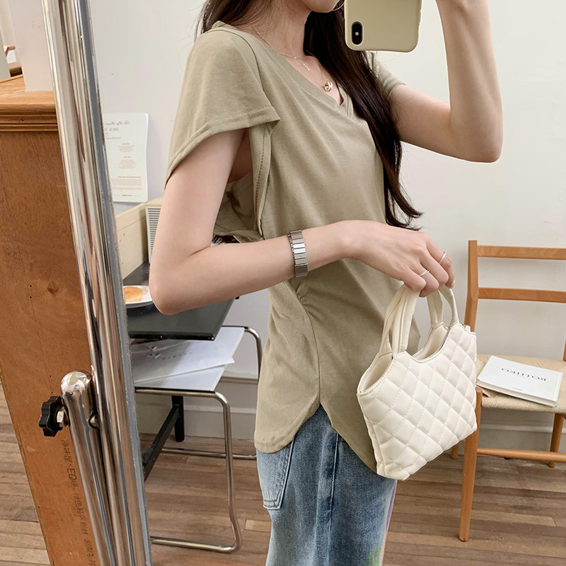 慵懒松弛感宽松抽褶短袖t恤女夏季新款美式复古小众绝美上衣