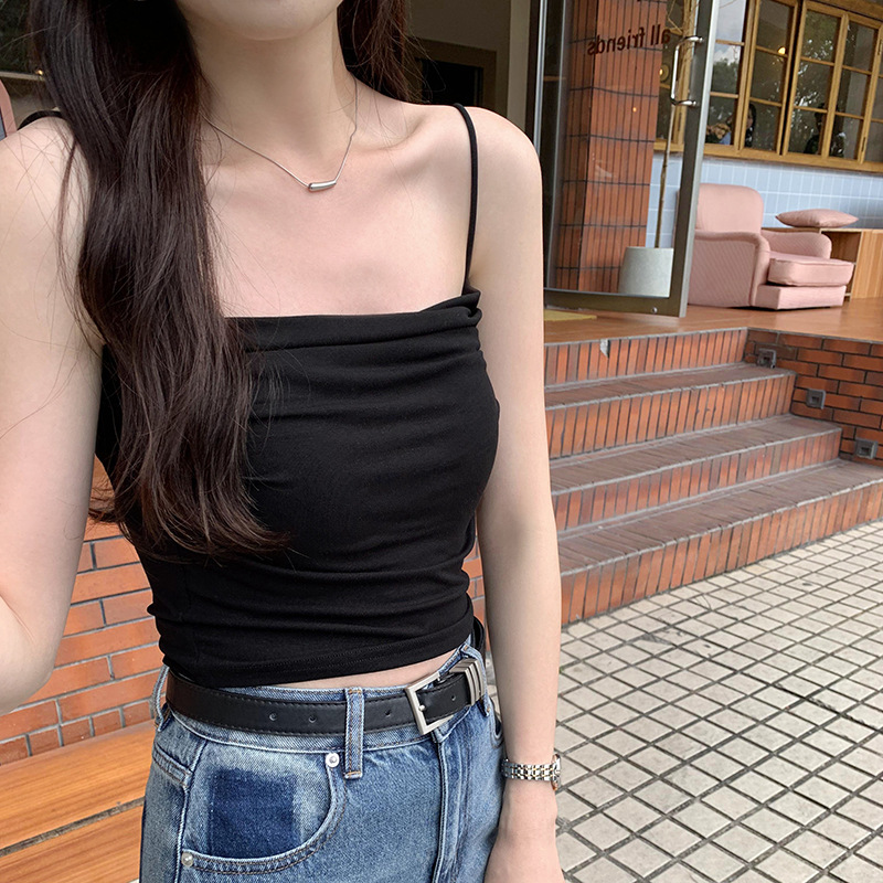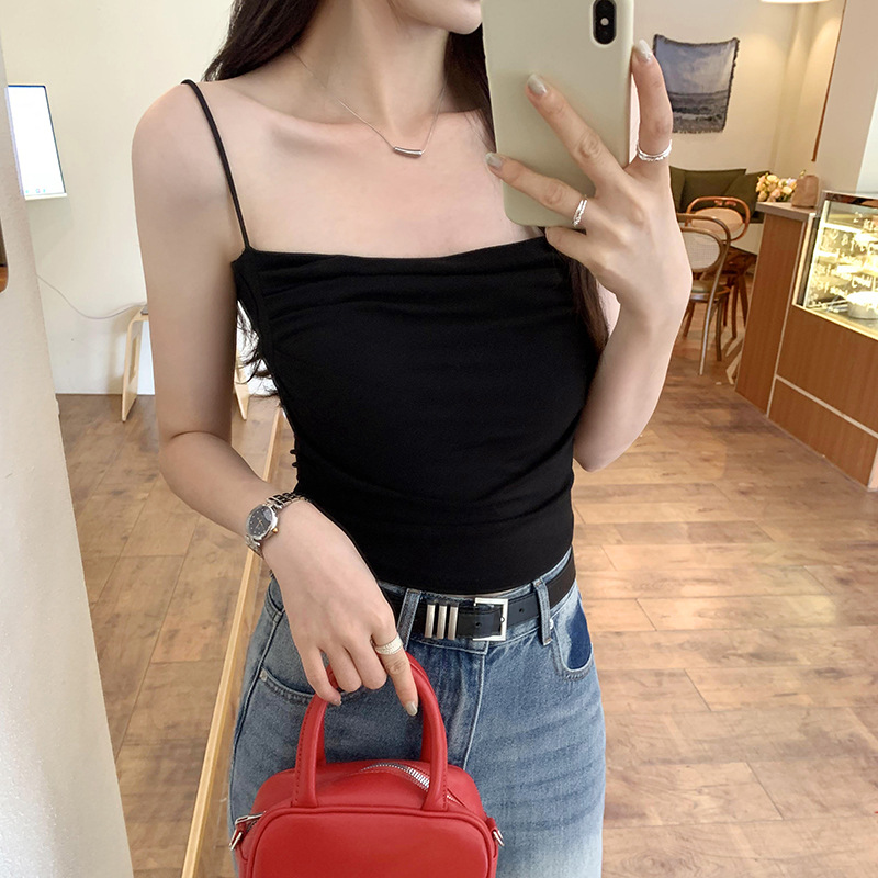 港风海边带胸垫压褶独特绝美红色小吊带女夏新款内搭外穿辣妹上衣