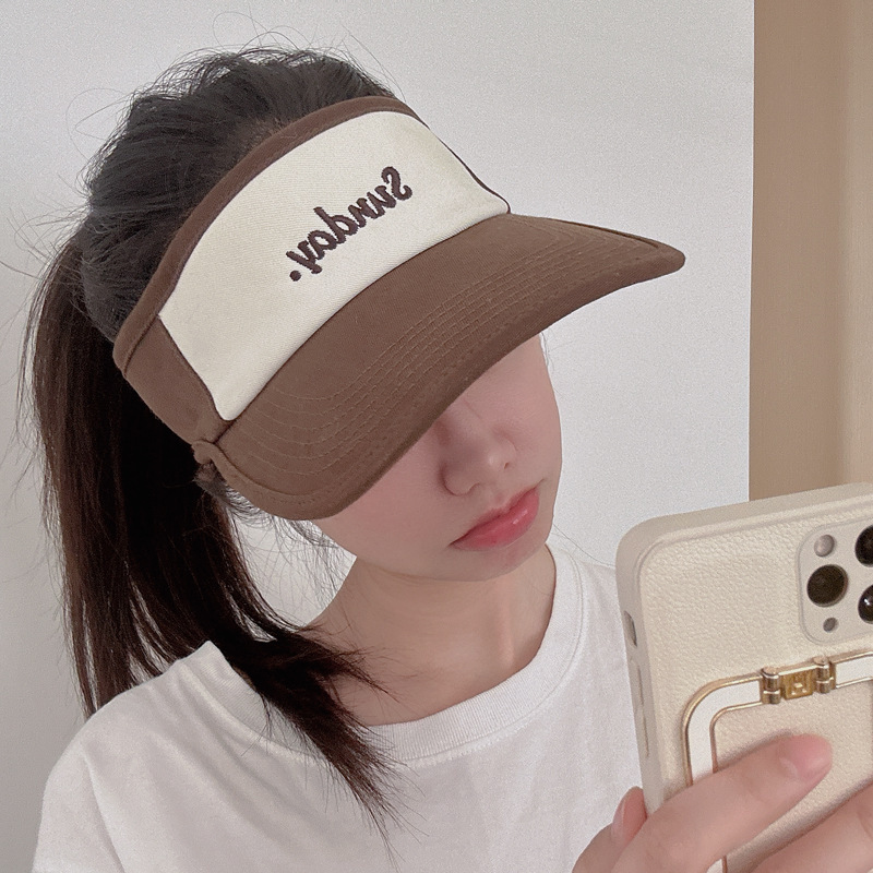 新款韩版拼色字母空顶棒球帽女夏季甜美学院风可调节防晒遮阳帽子