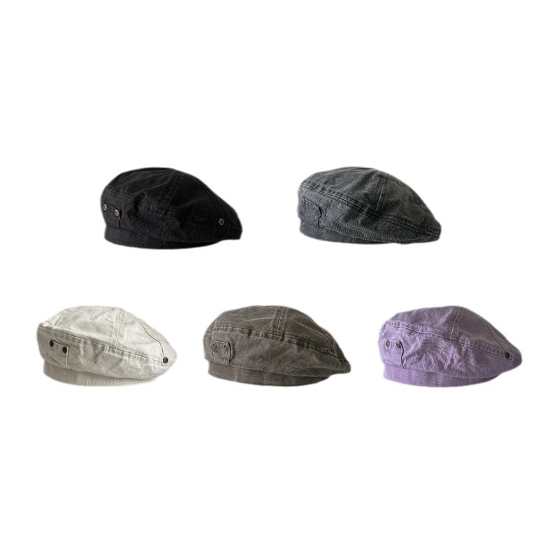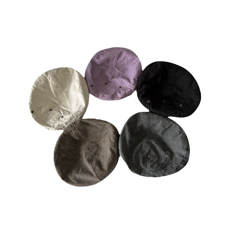 日系ins水洗贝雷帽子女夏季韩版街头口袋圆顶画家帽潮男情侣