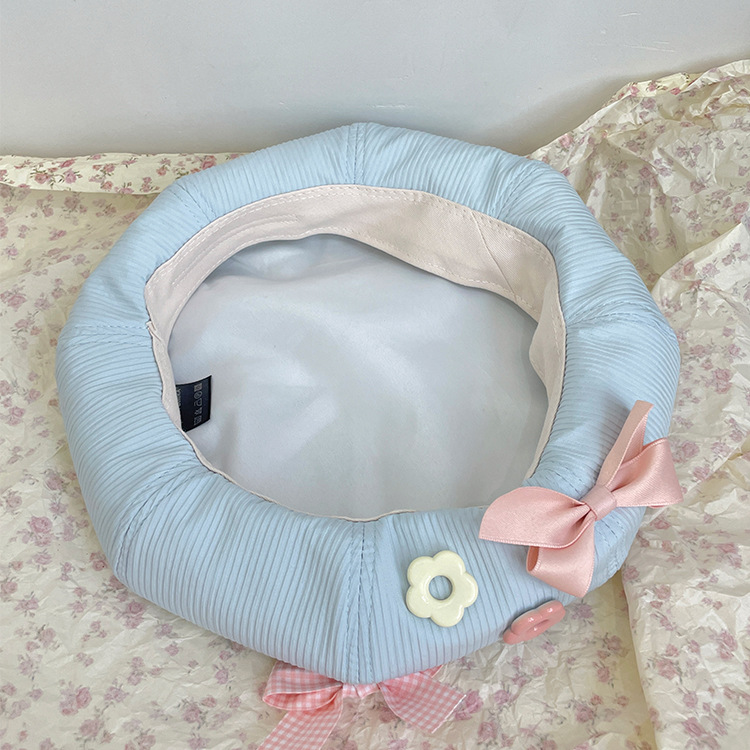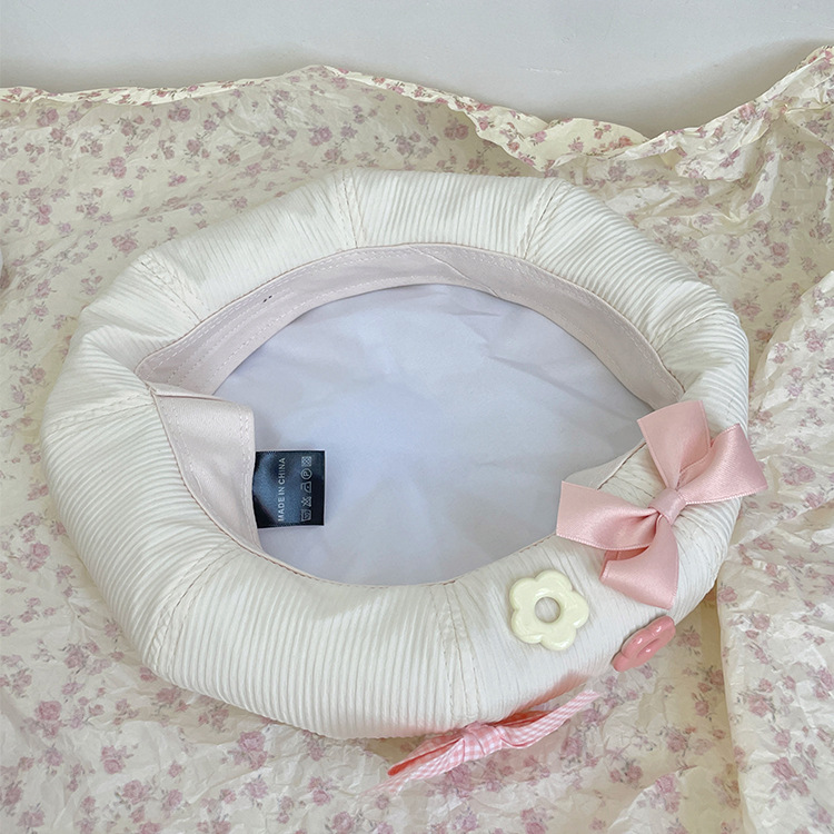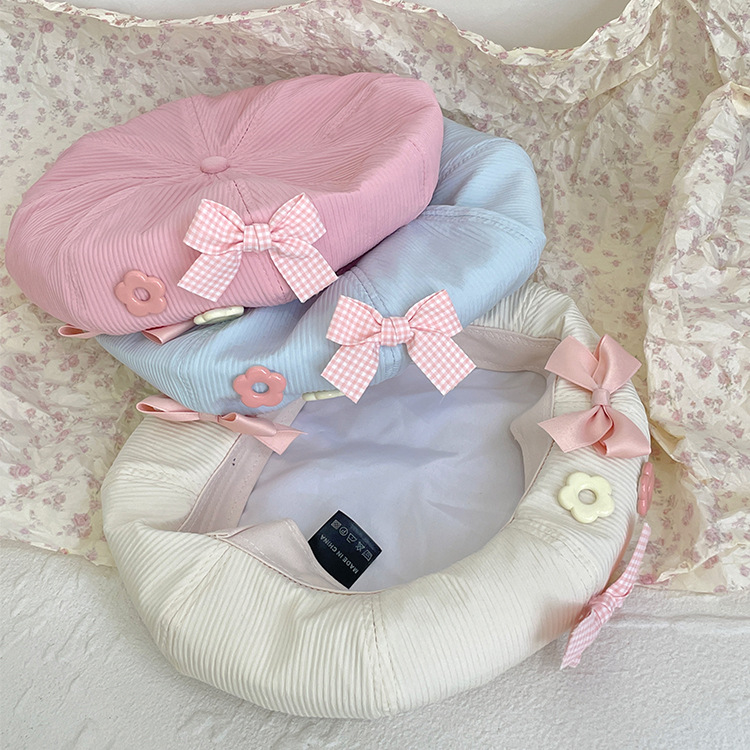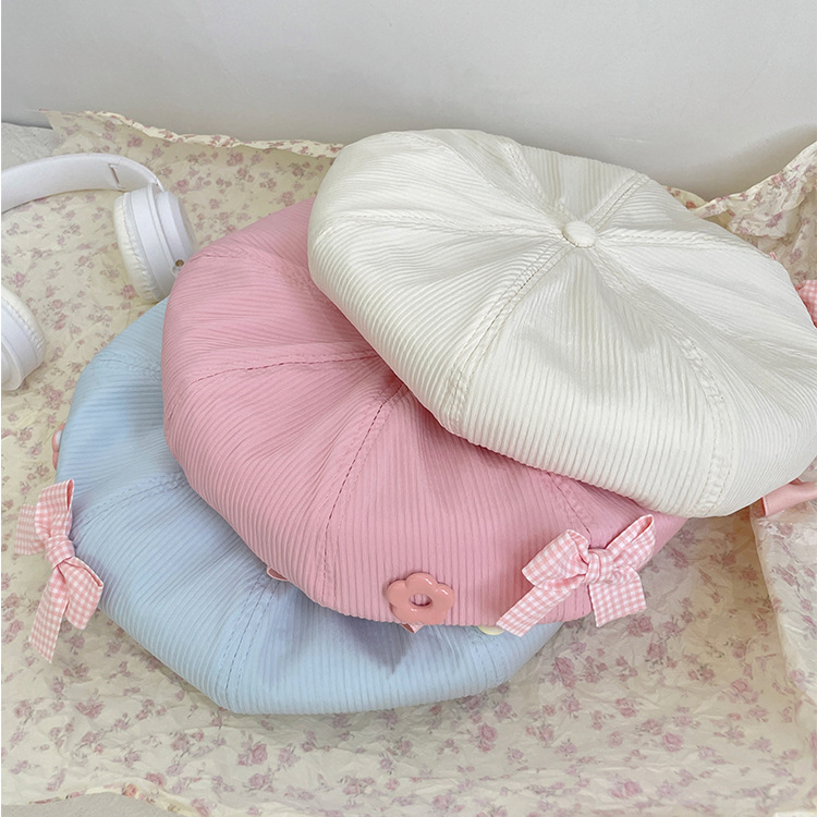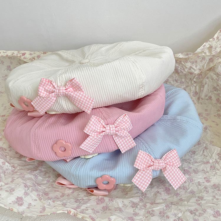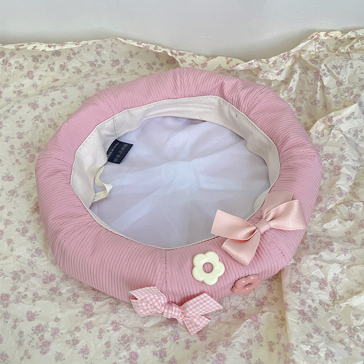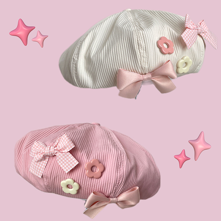 * 甜甜的少女心* 原创粉色蝴蝶结装饰贝雷帽子学生日系街头画家帽