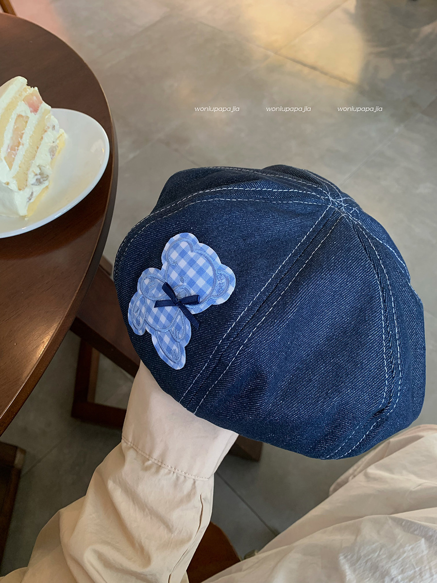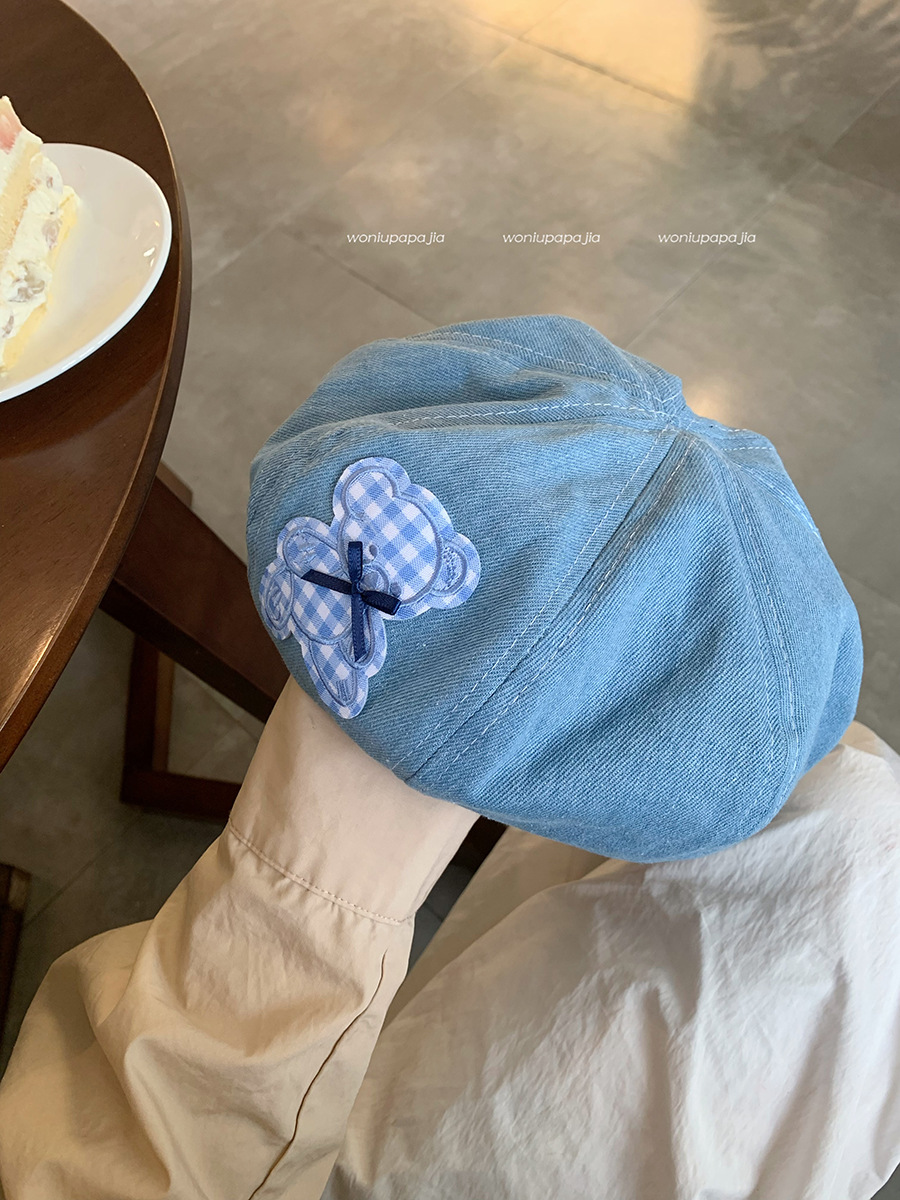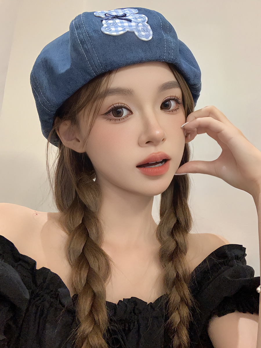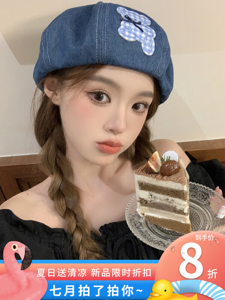 蓝色牛仔贝雷帽女显脸小百搭蓓蕾画家帽ins网红复古大头围八角帽
