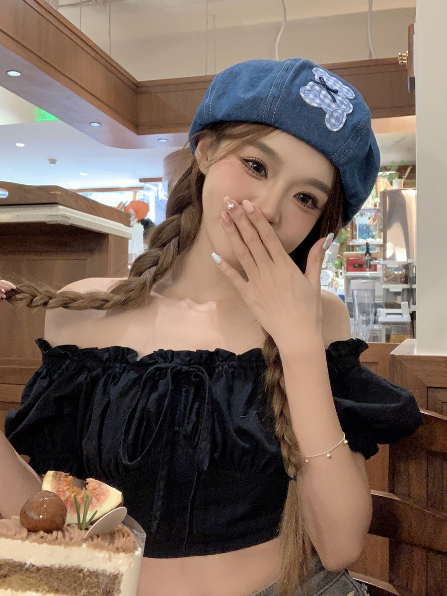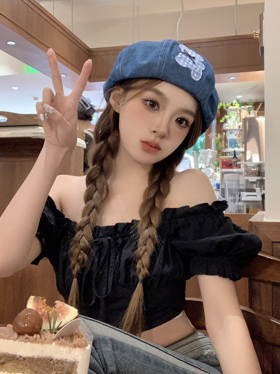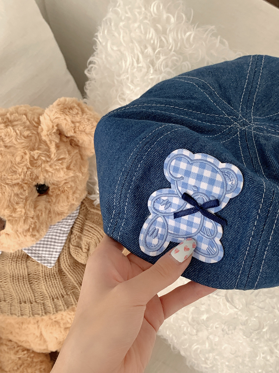 蓝色牛仔贝雷帽女显脸小百搭蓓蕾画家帽ins网红复古大头围八角帽
