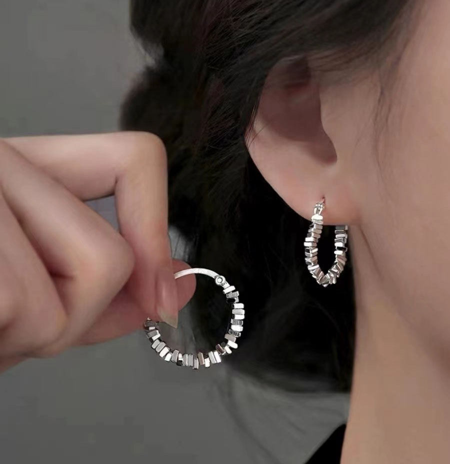 S990纯银碎银子耳环女韩版感网红时尚简约圈圈耳环ins不规则耳圈