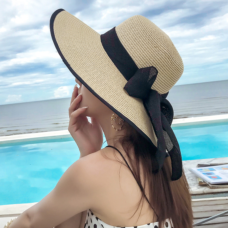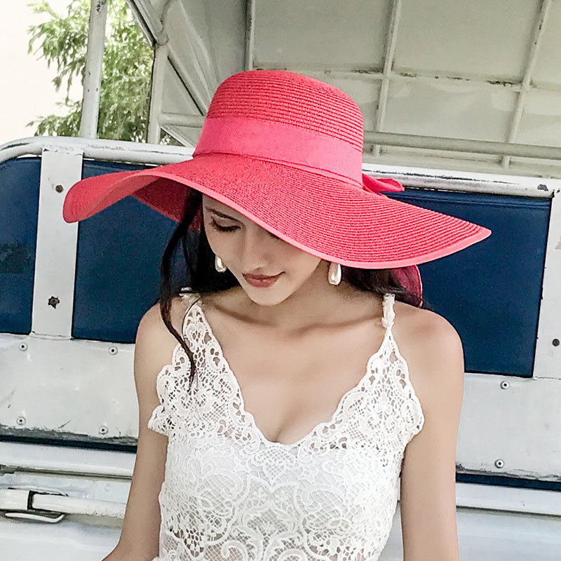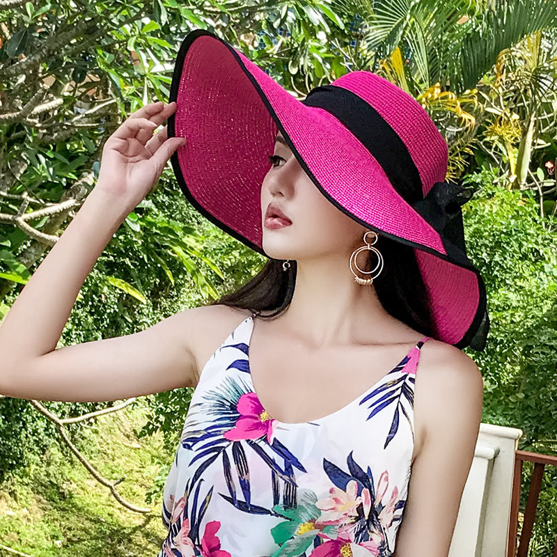 海边拍照帽子女夏防晒草帽沙滩度假旅游遮阳大帽檐超大太阳帽
